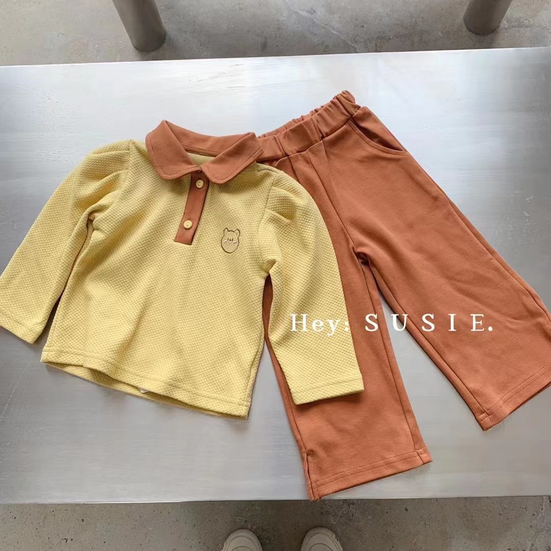 수지 2023 봄과 가을 소녀 귀여운 옷깃 폴로 셔츠 와이드 레그 팬츠 투피스 세트 물리적 매장 아동복 도매스토어 가기
