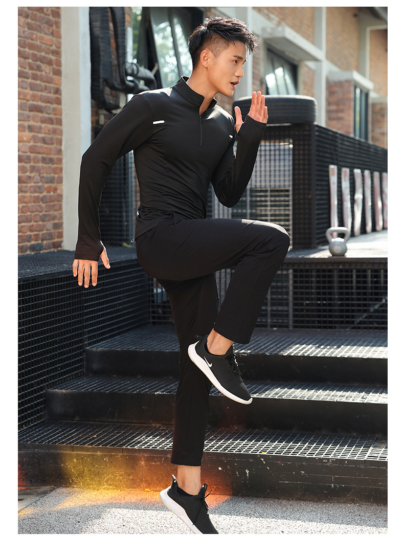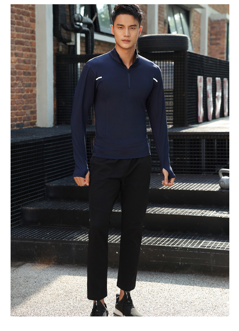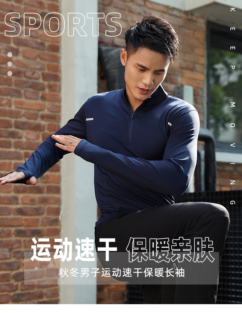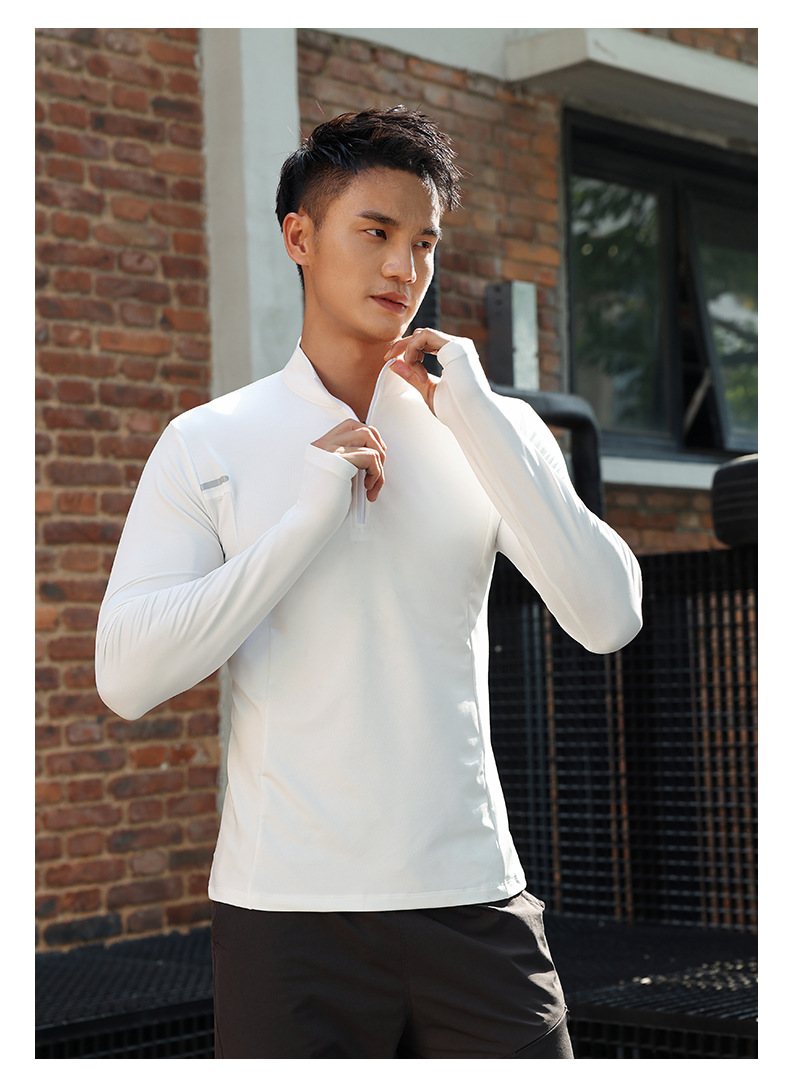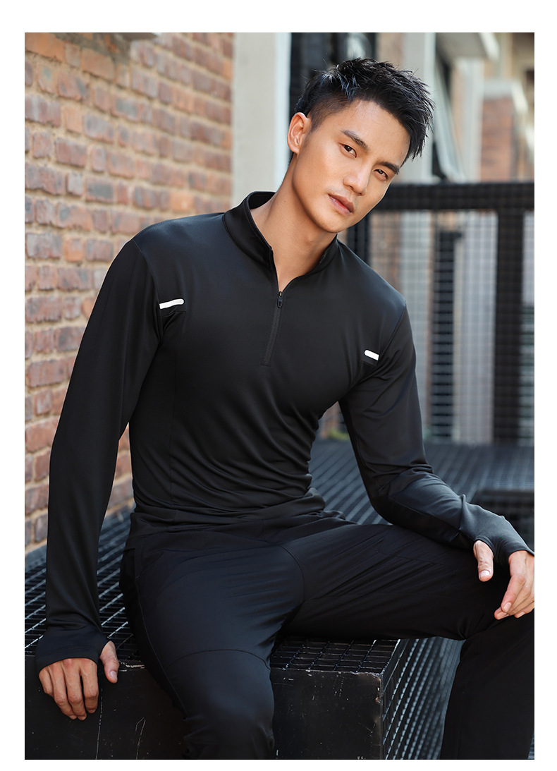속건 의류 남성 야외 레저 스포츠 스탠드 칼라 긴 소매 탑 폴로 셔츠 반 지퍼 패션 피트니스 의류 남성스토어 가기
