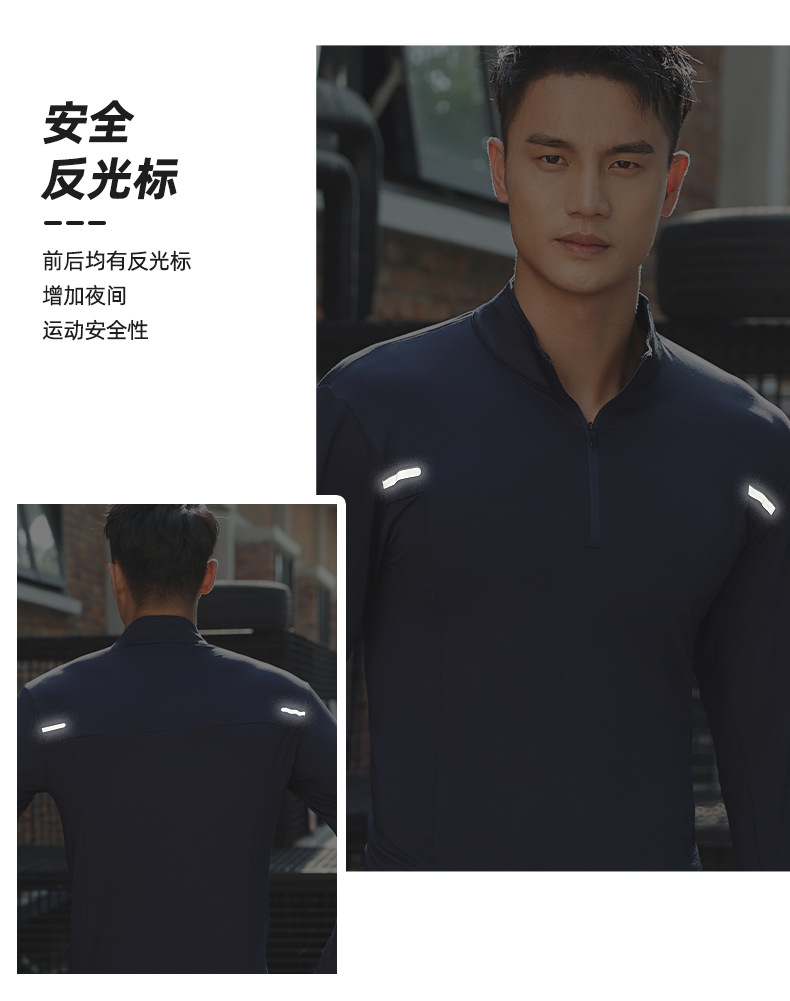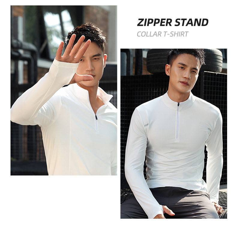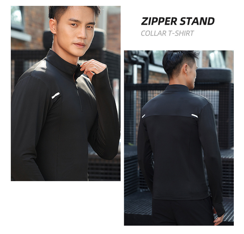 속건 의류 남성 야외 레저 스포츠 스탠드 칼라 긴 소매 탑 폴로 셔츠 반 지퍼 패션 피트니스 의류 남성