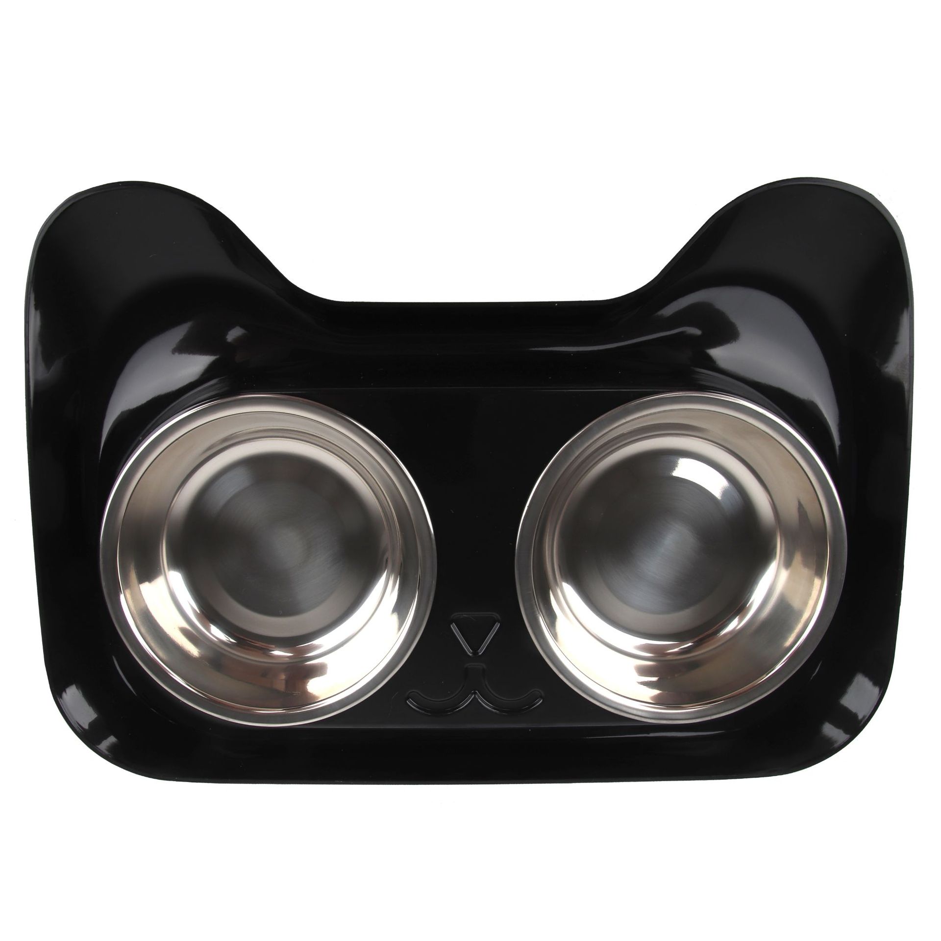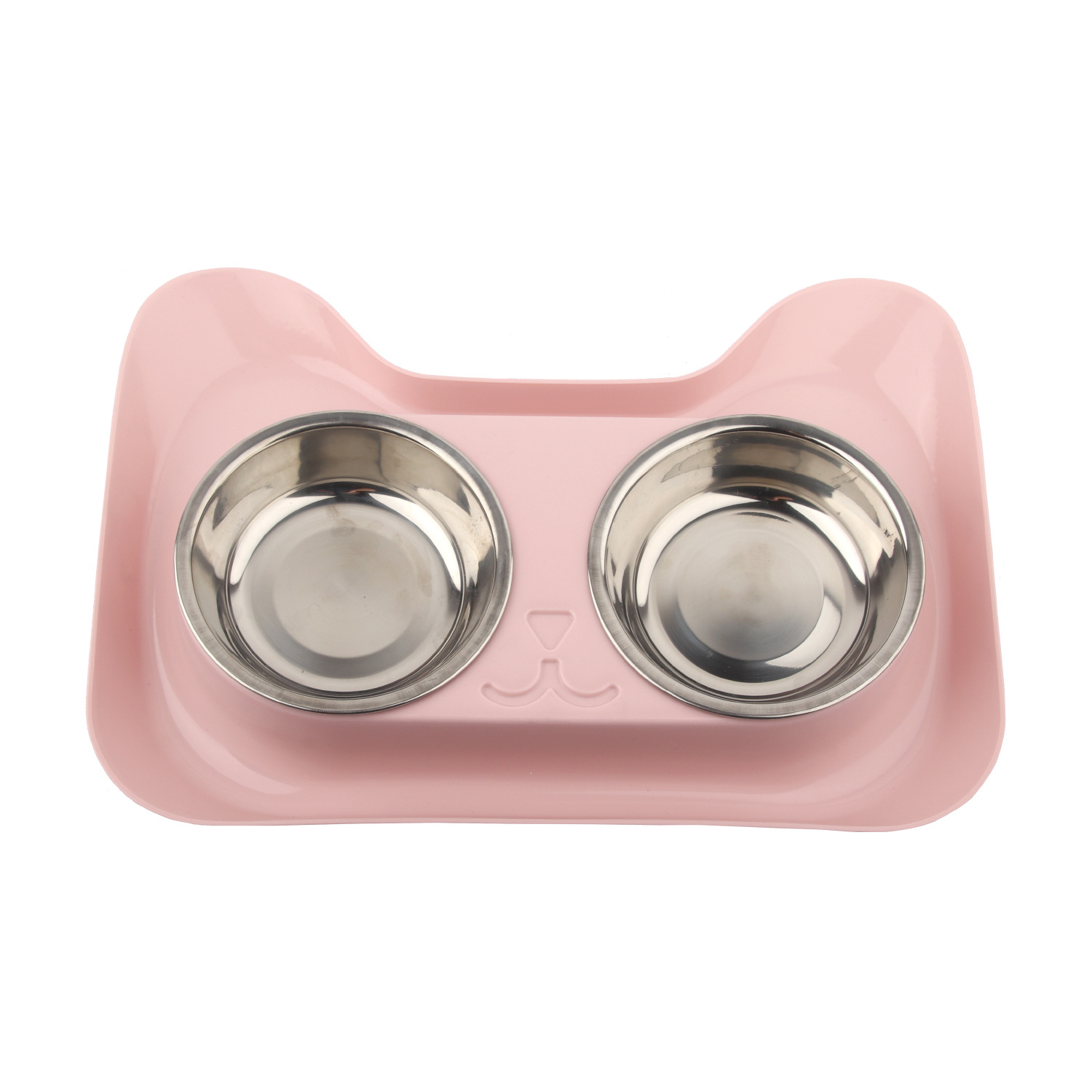 반점 애완 동물 그릇 고양이 그릇 개 그릇 식수 공급 통합 애완 동물 더블 그릇 스테인레스 스틸 야옹 귀여운 작은 그릇스토어 가기