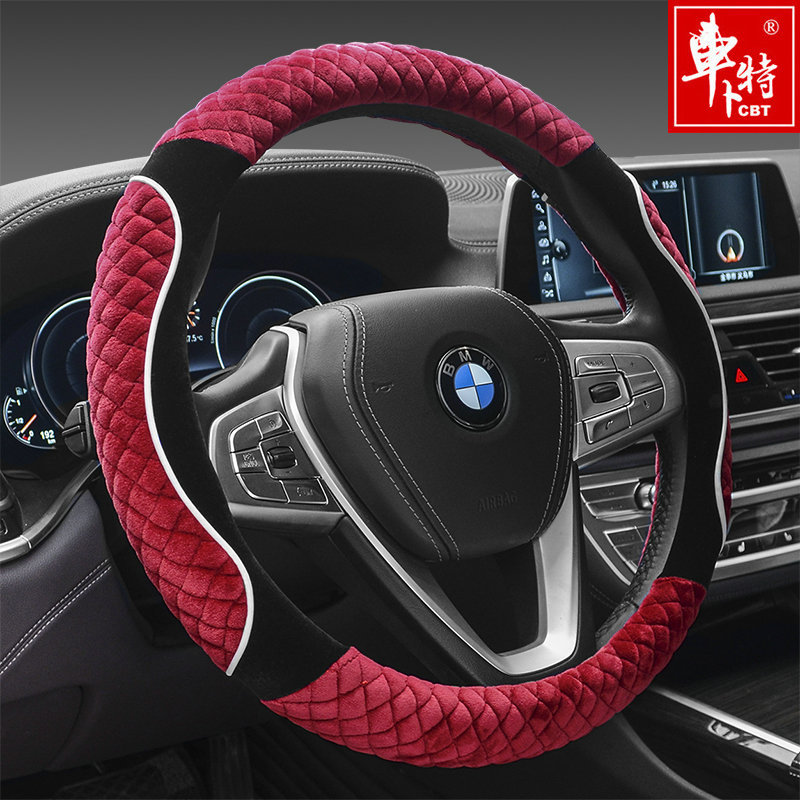 겨울 패션 미끄럼 방지 스티어링 휠 커버 한국 여성의 따뜻한 핸들 커버 짧은 플러시 자동차 사계절 핸들 커버