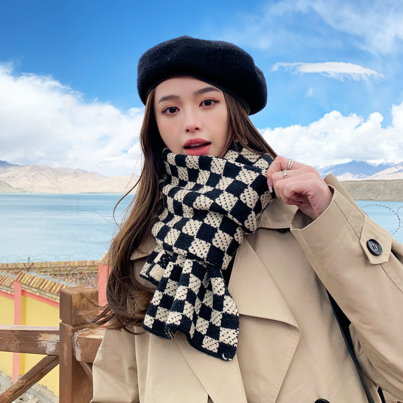 [하이 퀄리티 바둑판 스카프] 새로운 니트 스카프 여성의 가을과 겨울 한국어 다목적 부드러운 왁스 격자 무늬 스카프스토어 가기