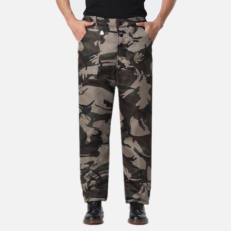 노동 보호 작업복 중년 및 노인을 세트 남성 겨울 위장 의류 면 패딩 의류 냉장 보온 방한 기모 두꺼운 면 바지