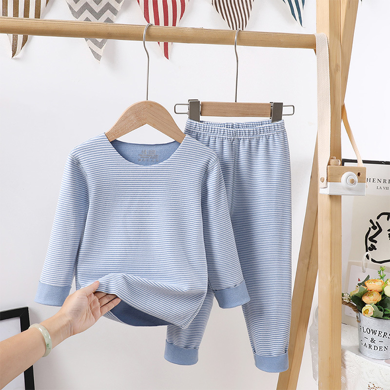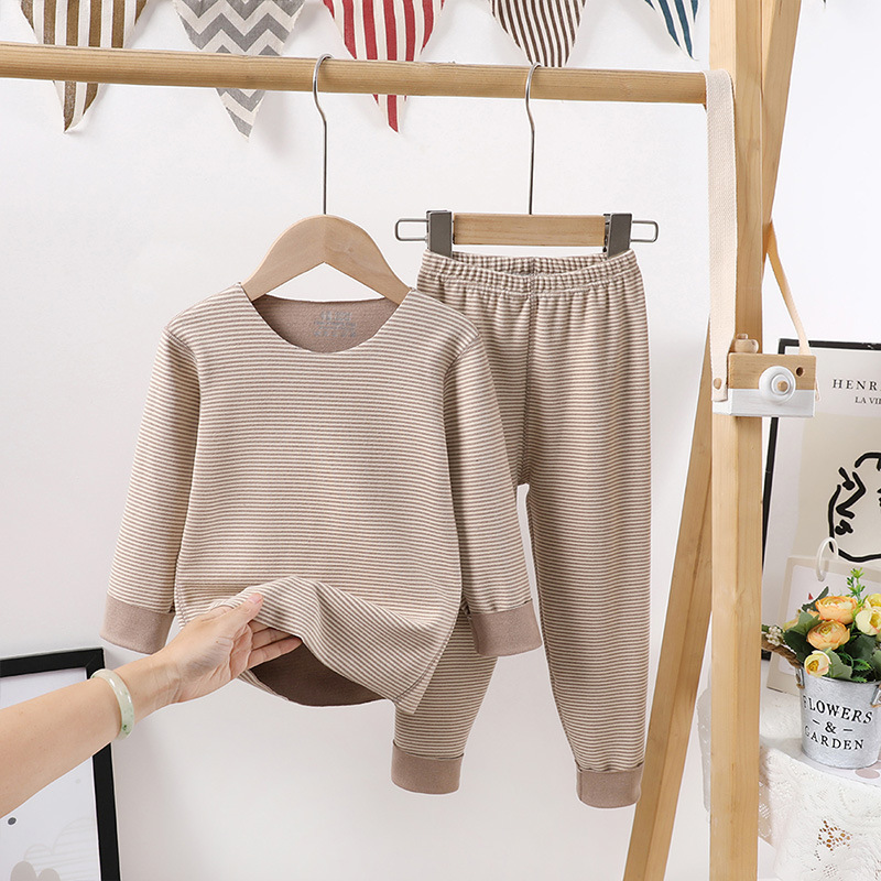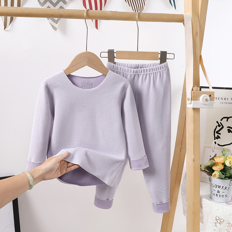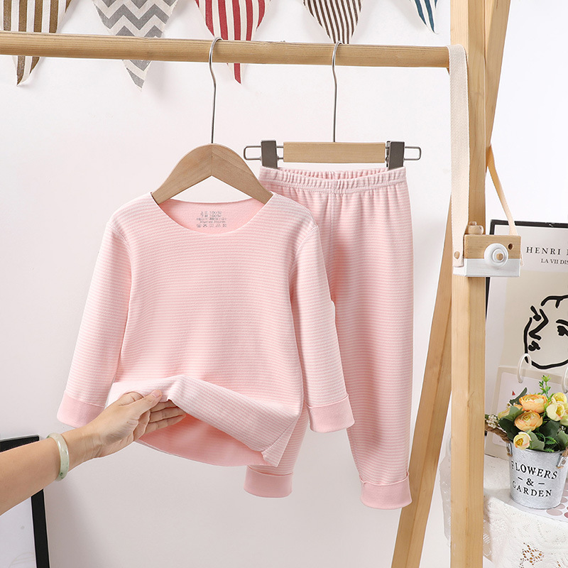 어린이 속옷 세트 AB 얼굴 Dejia 벨벳 가을 옷 가을 바지 남성과 여성의 아동복 스트라이프 따뜻한 잠옷 가정 옷 겨울