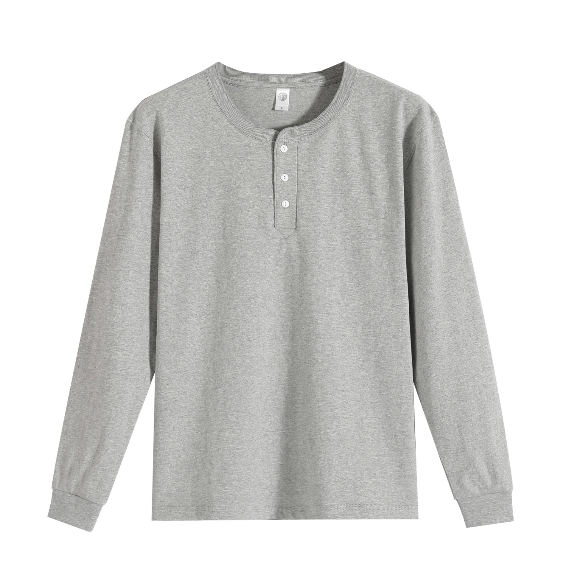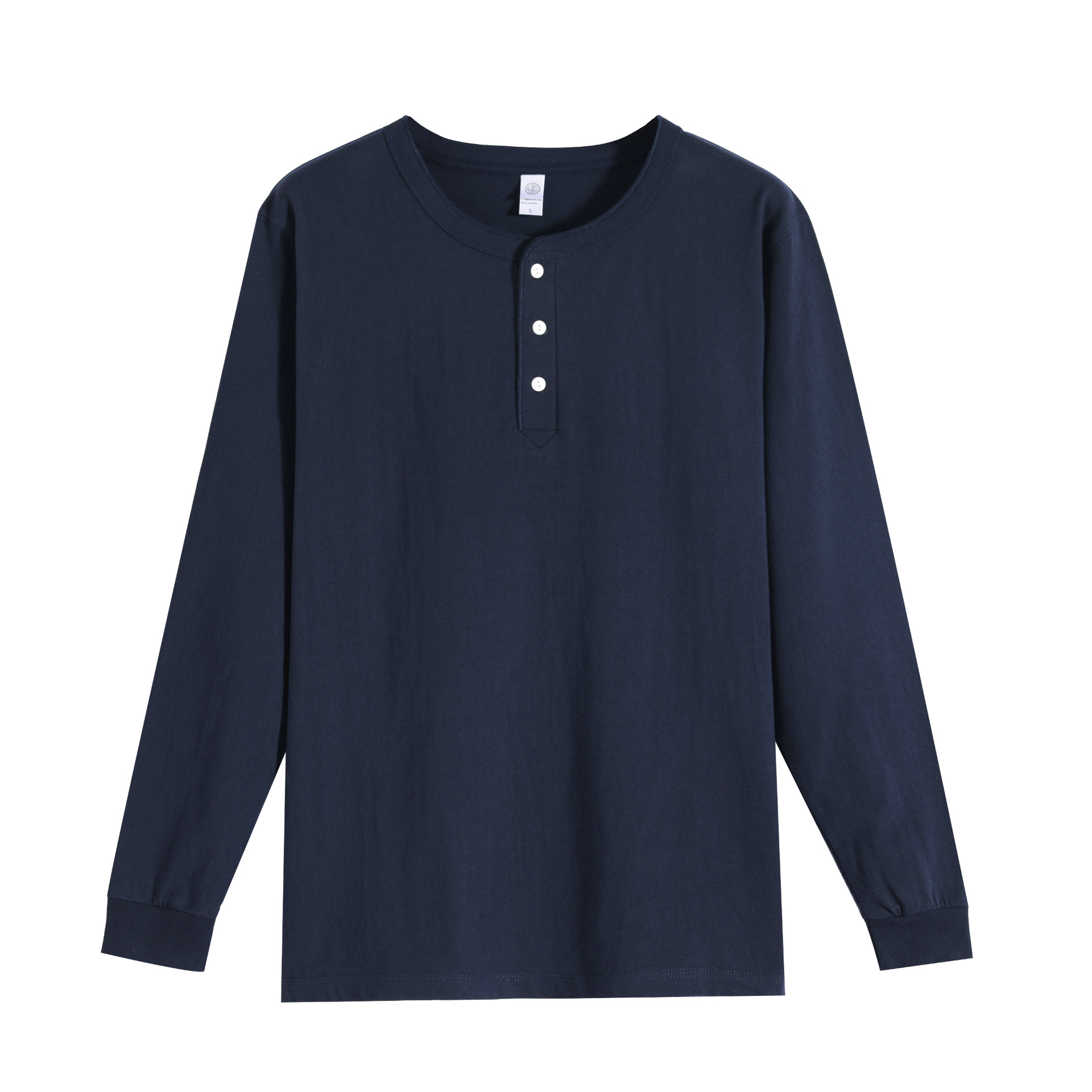 신장 코튼 250g 아메리칸 헤비 헨리 칼라 긴팔 티셔츠 남성용 가을/겨울 두꺼운 느슨한 흰색 헨리 셔츠스토어 가기