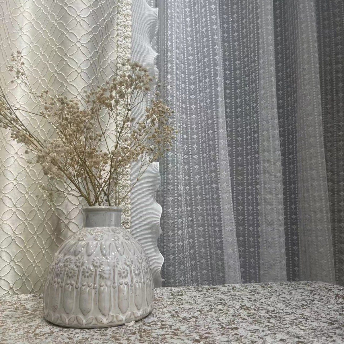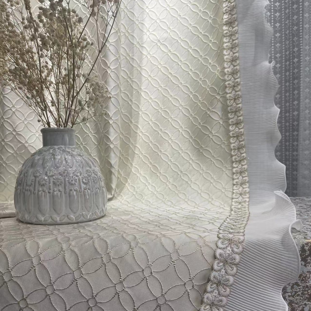 源头厂家新款奶油白浮雕四叶草窗帘