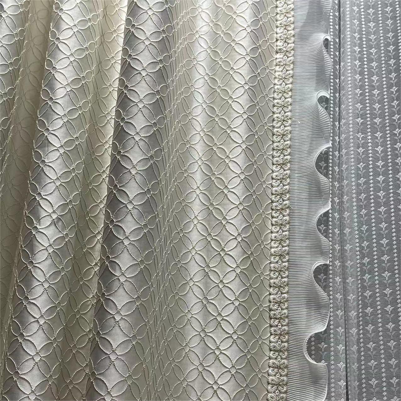 공장 새로운 크림 화이트 네잎 클로버 커튼 라이트 럭셔리 고정밀 3 차원 자카드 수직 커튼 프랑스 복고풍 침실 커튼