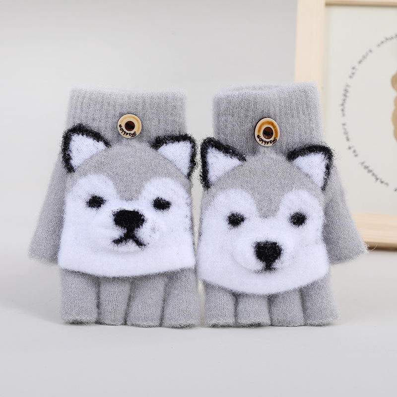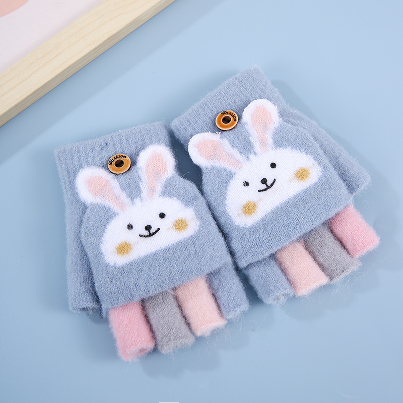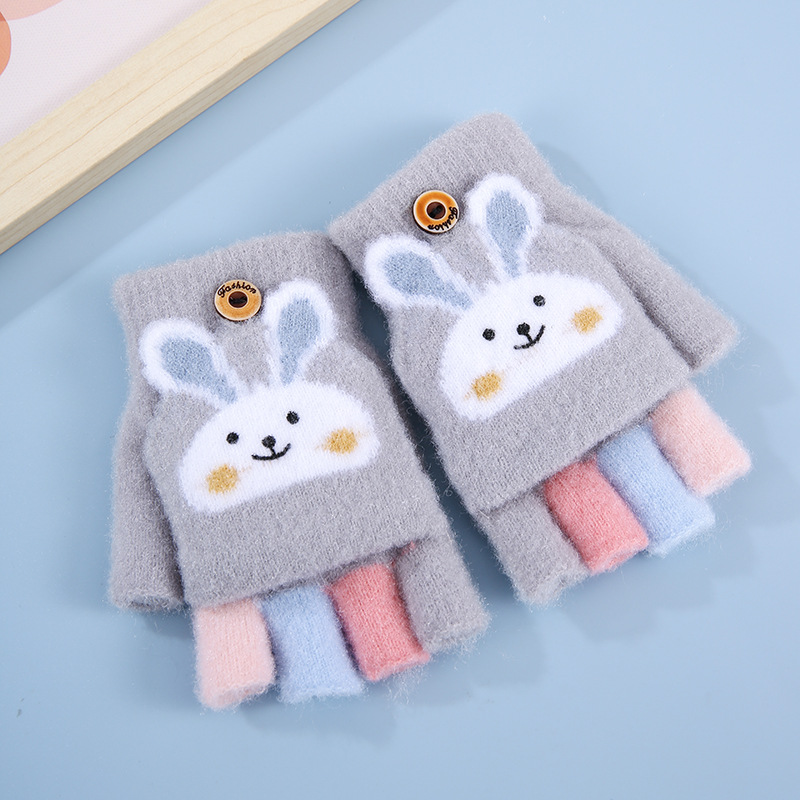 어린이 장갑 겨울 따뜻한 남성과 여성 공주 아기 반 손가락 플립 장갑 귀여운 어린이 학생 쓰기 만화스토어 가기