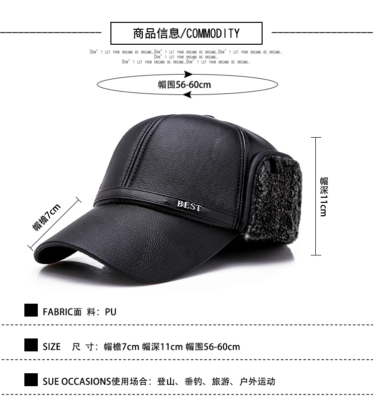 남성용 모자 도매 겨울 중노년 할아버지 모자 두꺼운 보온 귀덮개 가죽 모자 야외 다용도 챙모자
