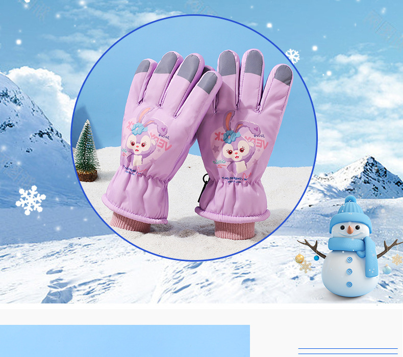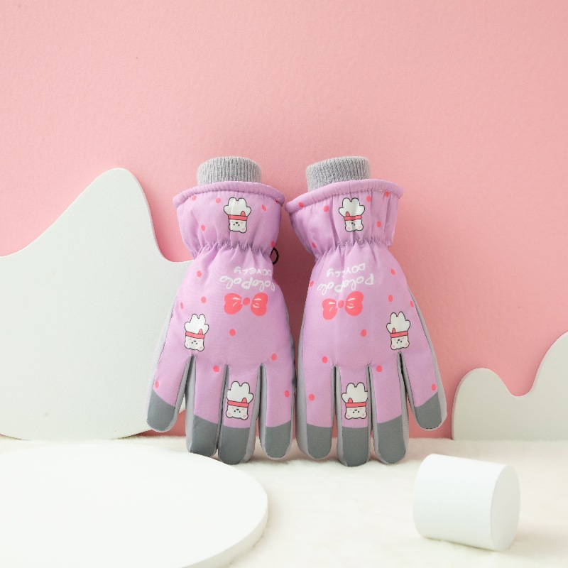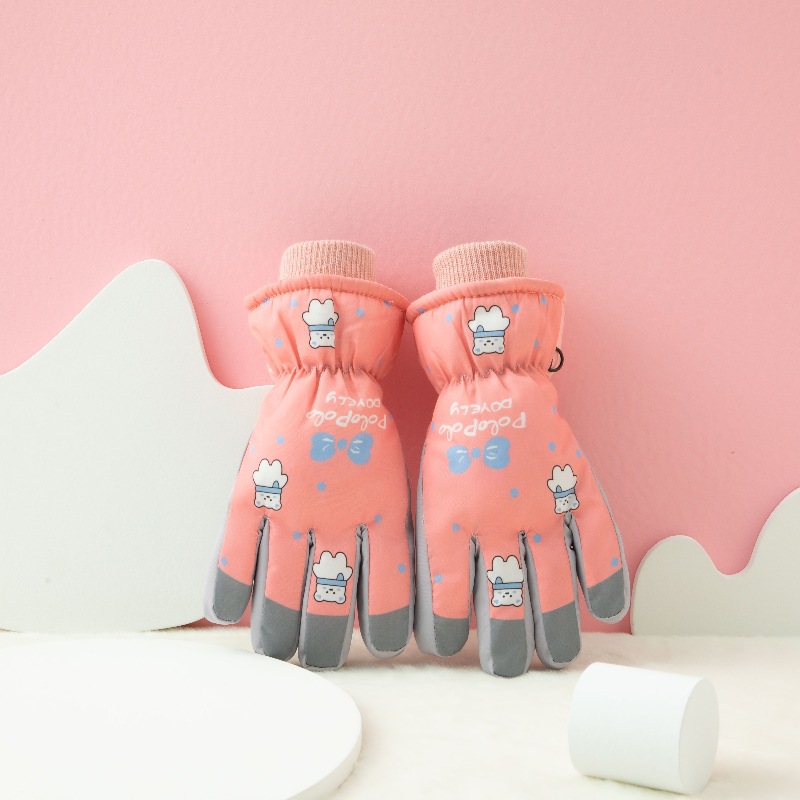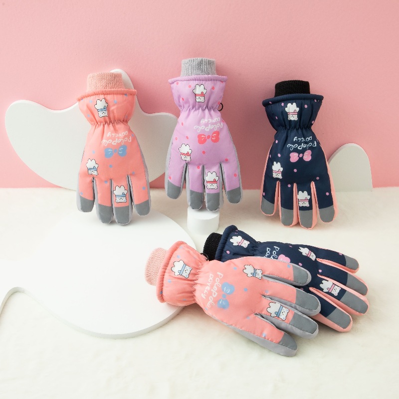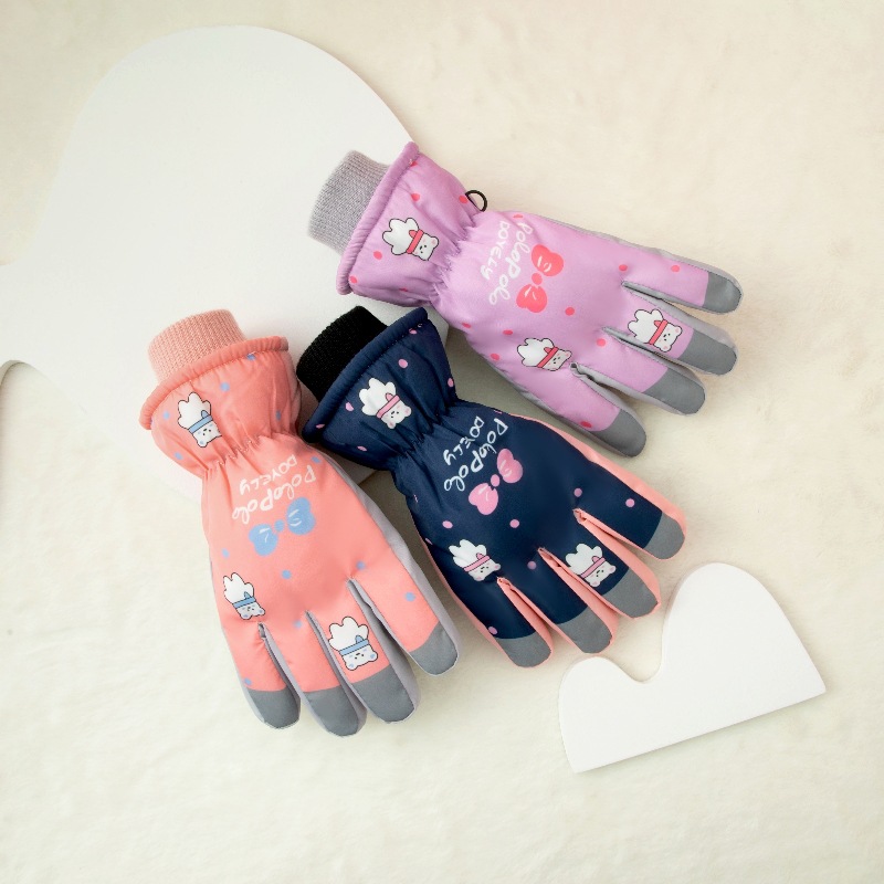겨울 어린이 스키 장갑 남성과 여성의 기모 터치 스크린 사이클링 장갑 어린이와 학생을위한 다섯 손가락 따뜻한 장갑 귀여운