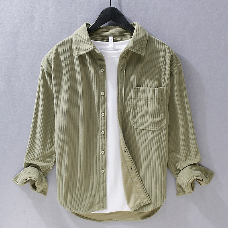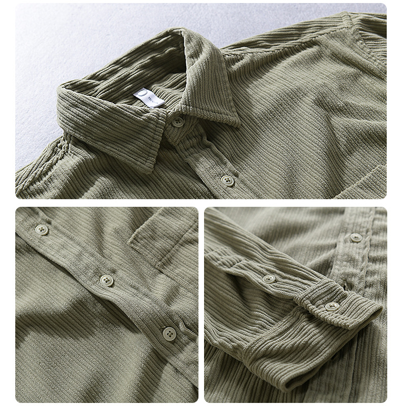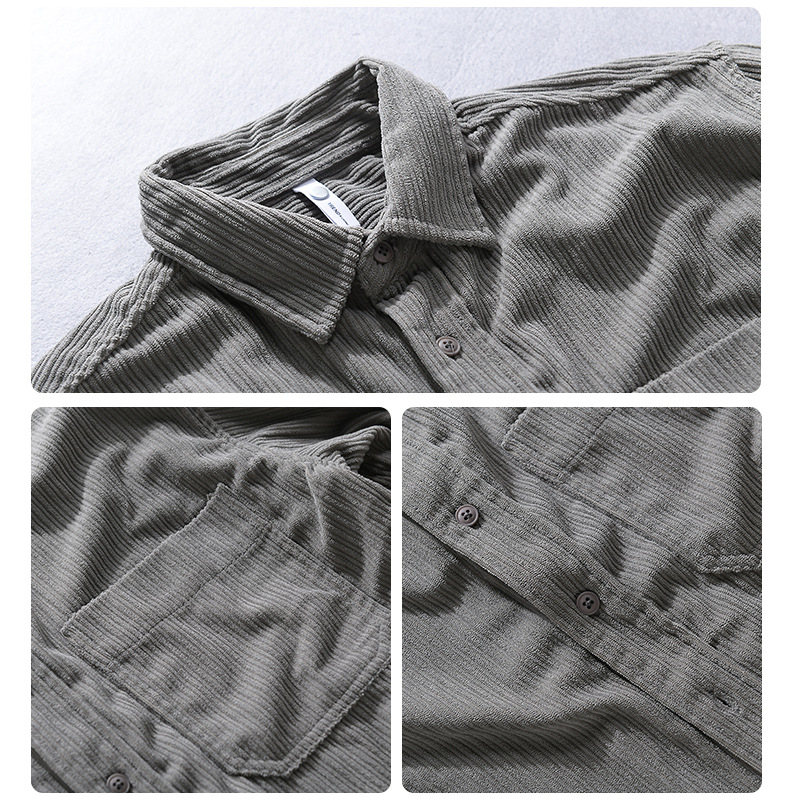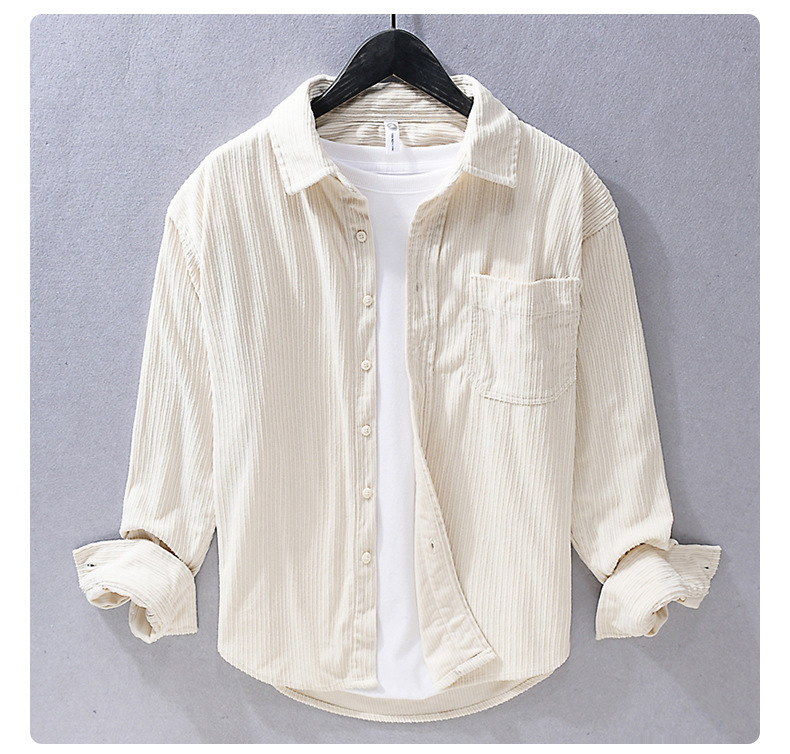 가을 코듀로이 긴팔 셔츠 남성 루즈한 캐주얼 모든 매치 심플 탑 남성 청소년 유선 셔츠 8811
