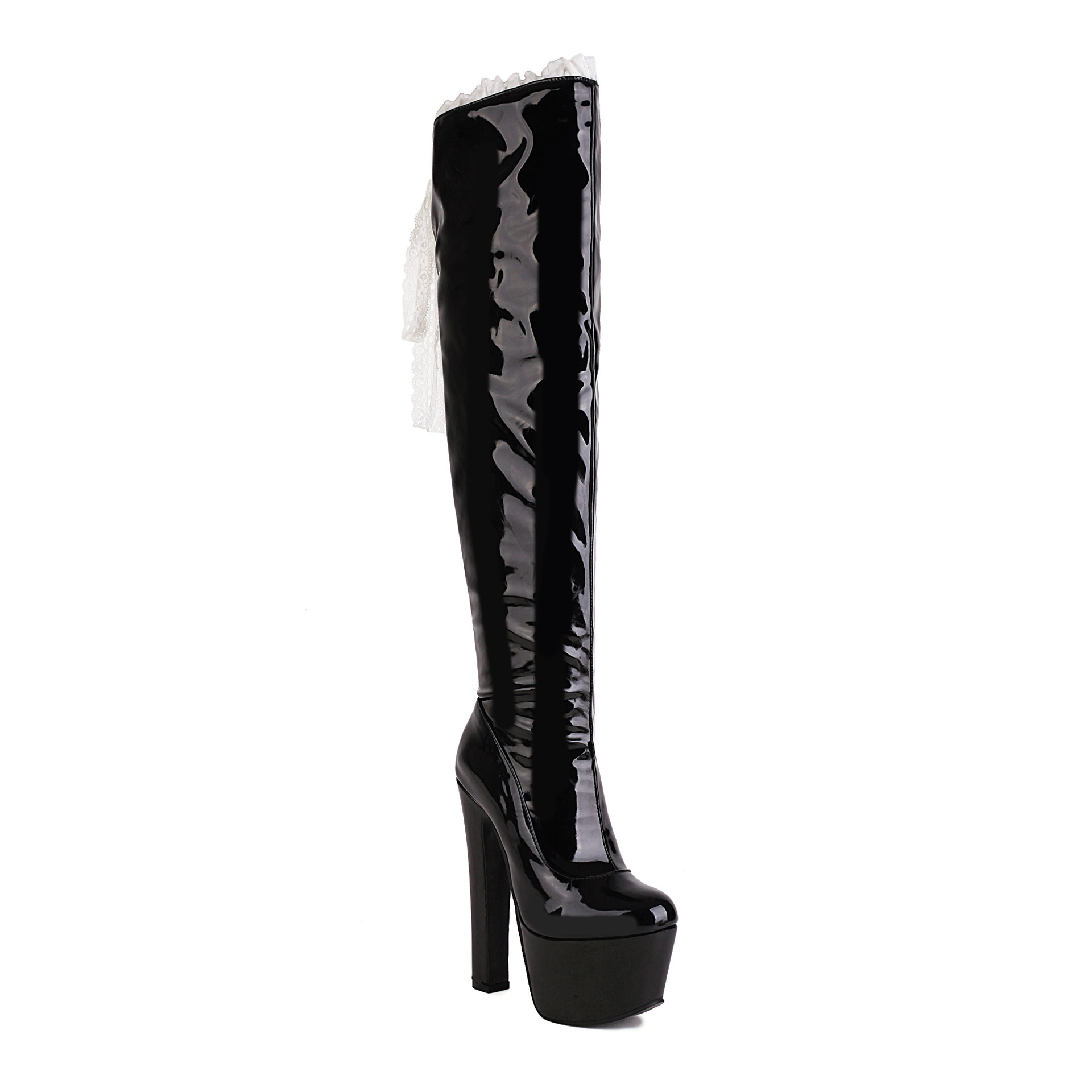 40-46 유럽과 미국의 대외 무역 국경 가을과 겨울 무릎 하이힐 부츠 나이트 클럽 섹시한 여성 부츠 레이스 무릎 높이 부츠 G628