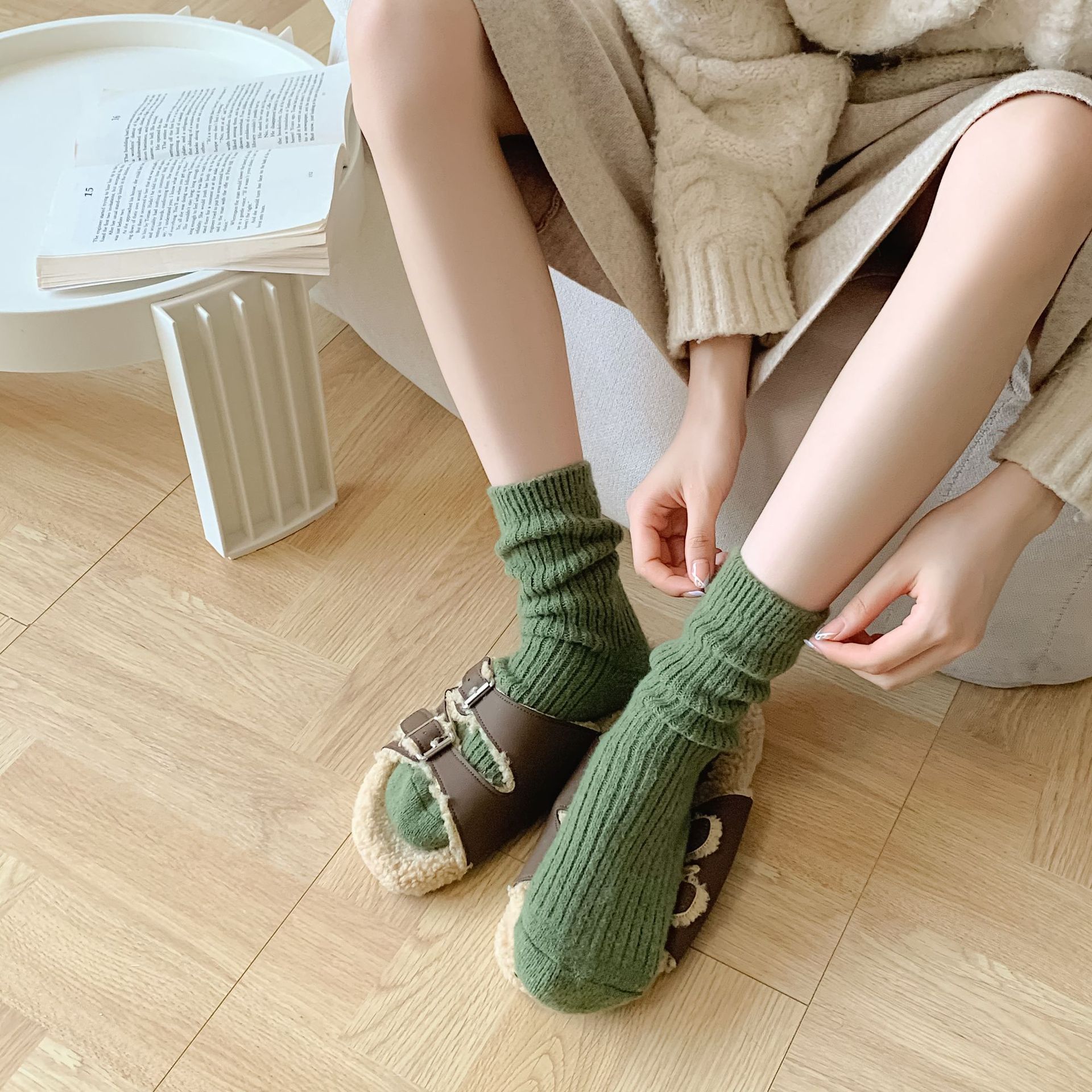 가을과 겨울 새 양모 양말 기모 두꺼운 따뜻한 유행 학술 일본 단색 더미 양말스토어 가기
