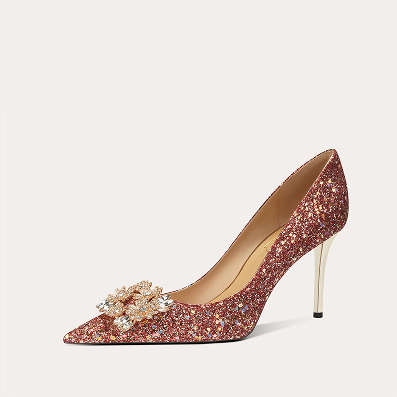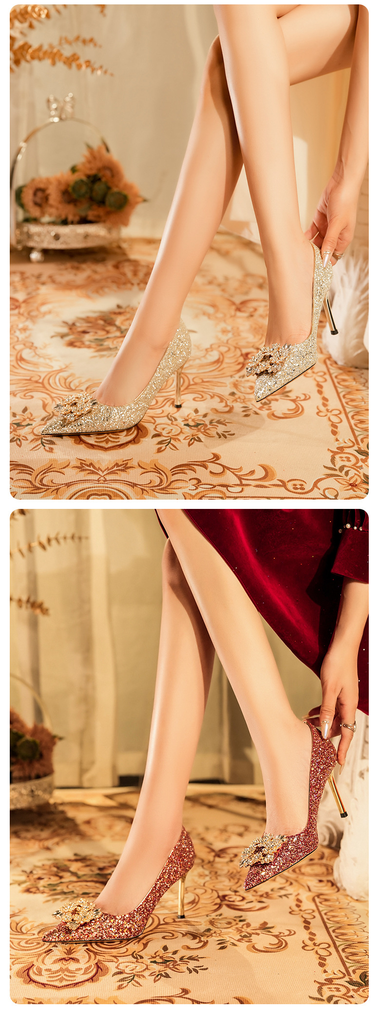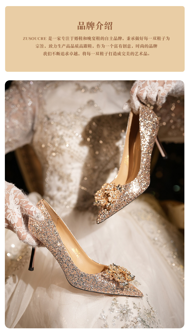708-A2 양피 저녁 식사 모조 다이아몬드 신부 신발 쇼 2 원피스 신부 들러리 프랑스 고급 크리스탈 하이힐 여성스토어 가기