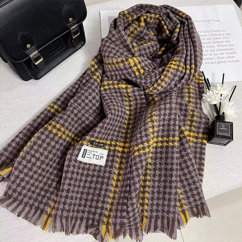 Houndstooth 스카프 한국식 올 매치 롱 아카데미 스타일 자외선 차단제 스카프 겨울 따뜻한 스트라이프 캐시미어 대형 숄