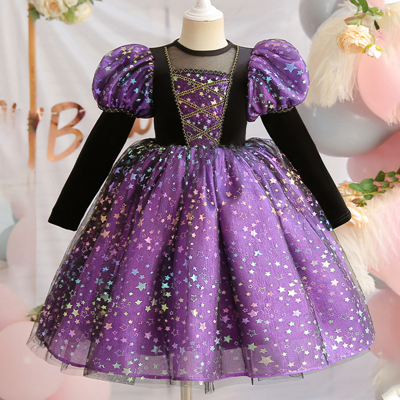어린이 할로윈 의상 유럽과 미국 소녀들을 위한 보라색 코스프레 의상 코스프레 공연 드레스