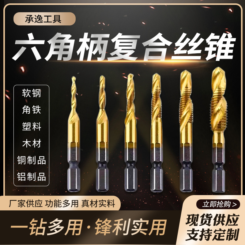 고속 강철 태핑 세트 다기능 육각형 핸들 기계 탭 스트레이트 홈 드릴링 및 모따기 통합 복합 태핑스토어 가기