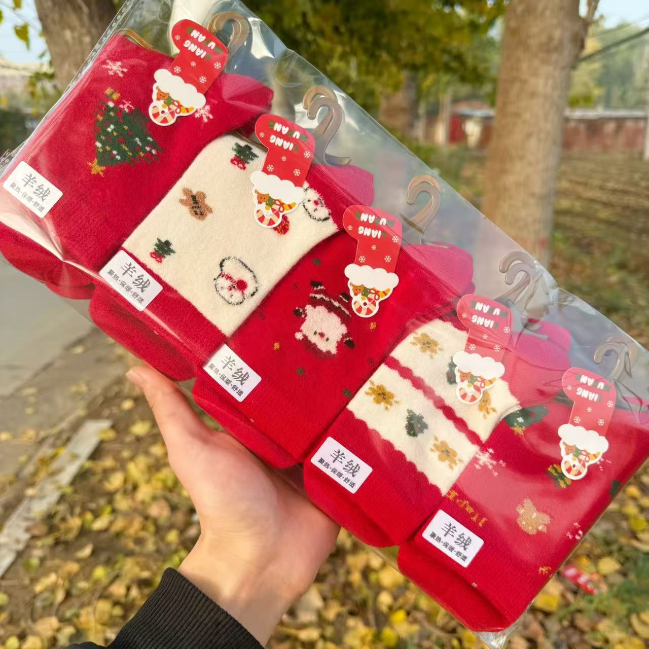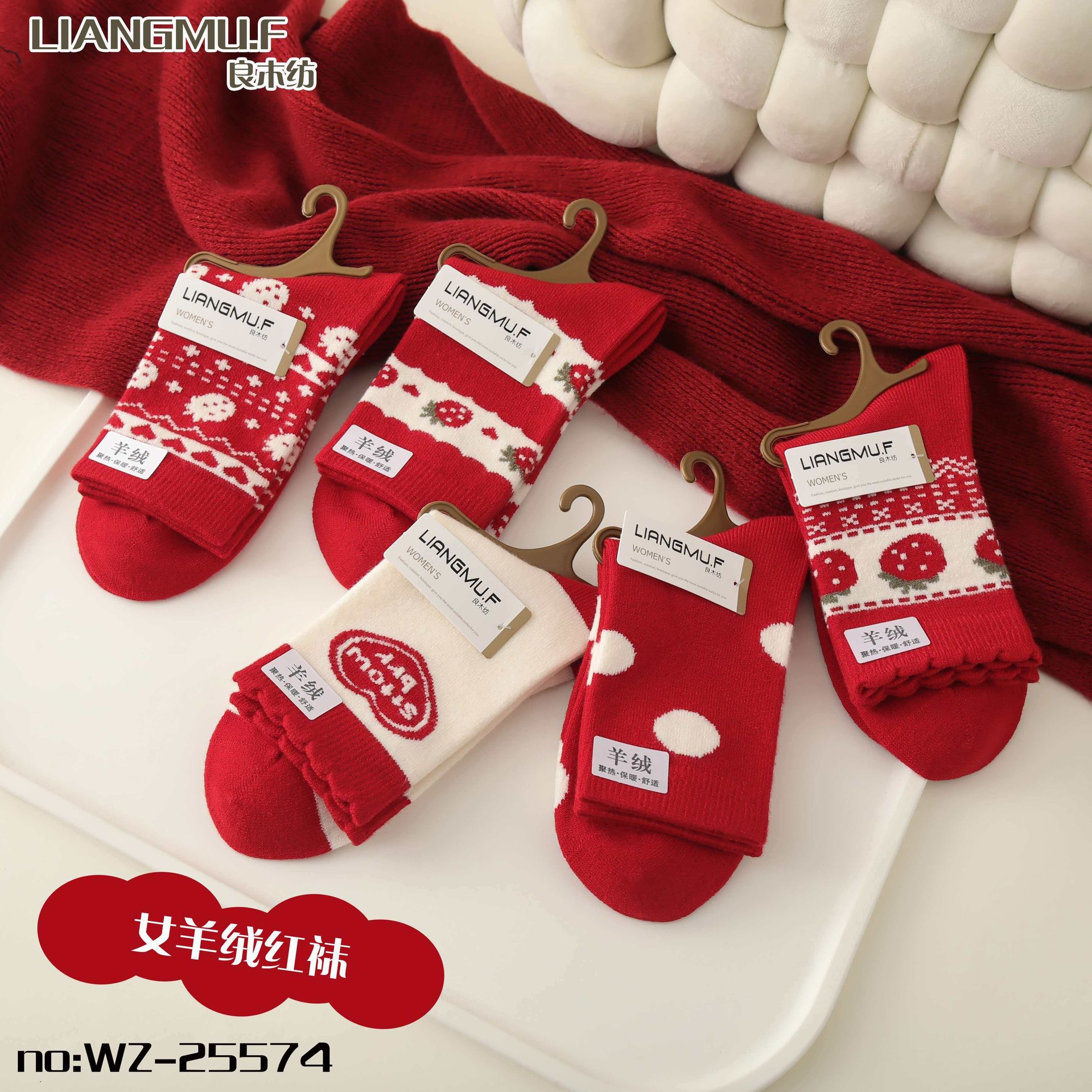 량무 섬유 가을 겨울 새로운 두꺼운 여성 캐시미어 양말 일본과 한국 스타일 유행 학생 스포츠 크리스마스 울 양말