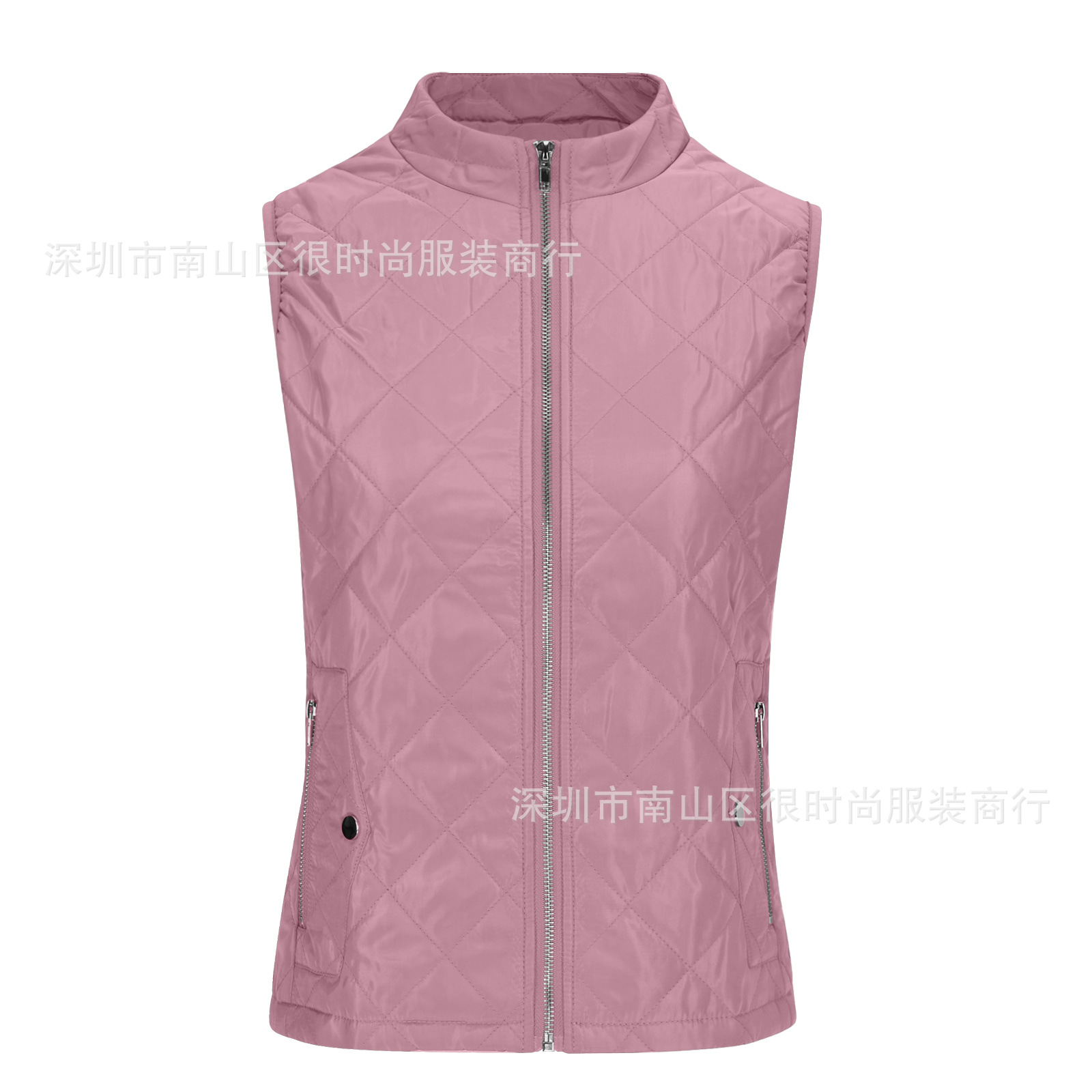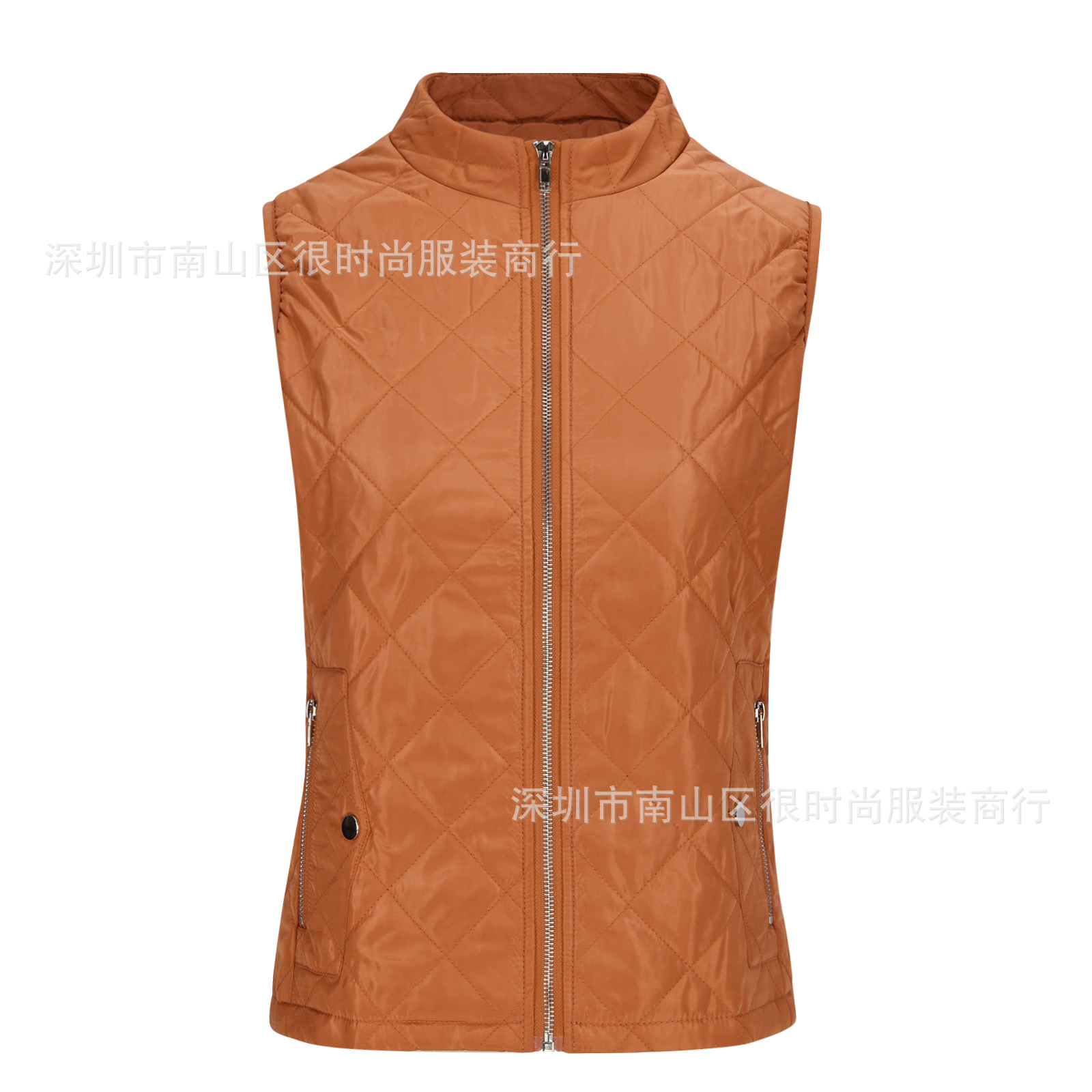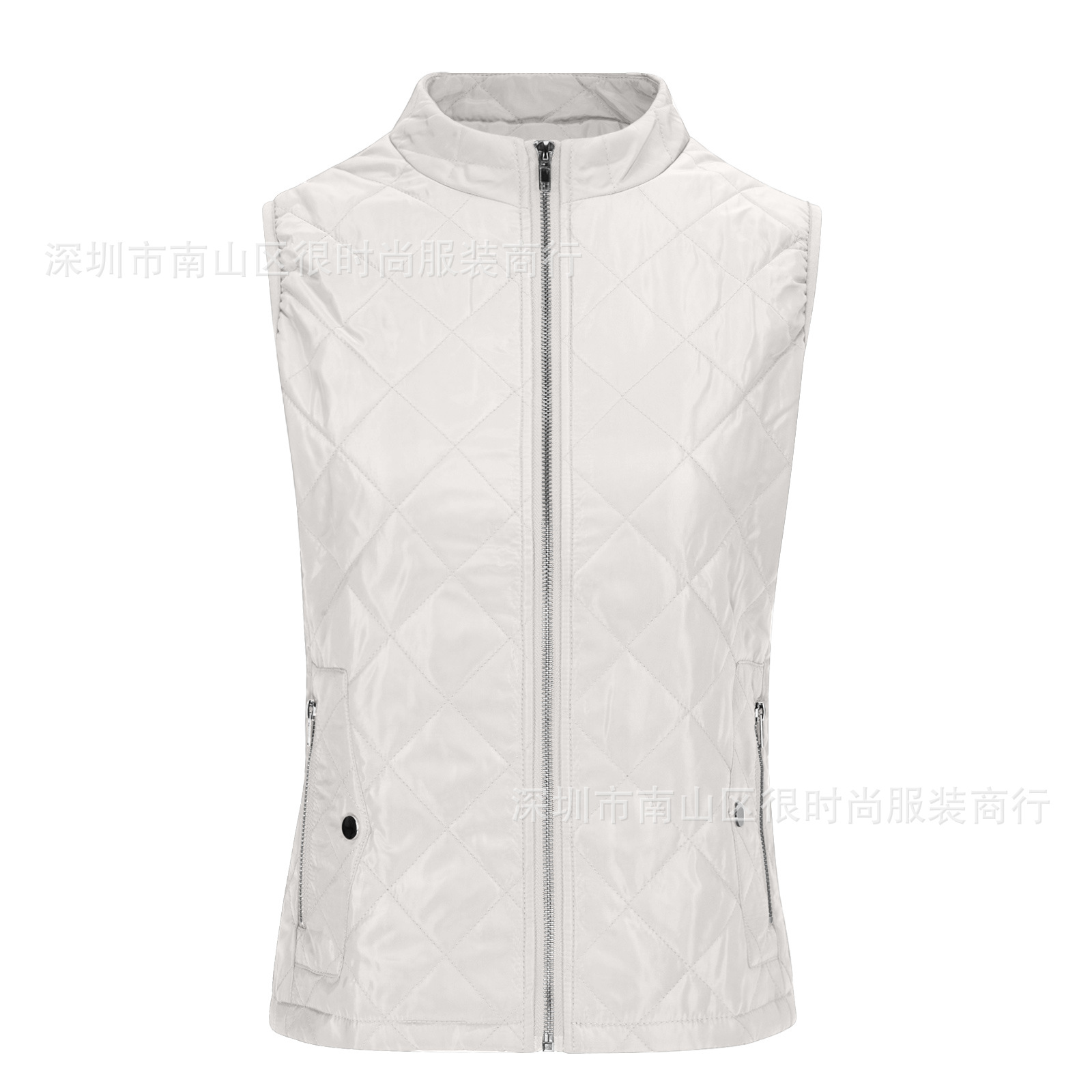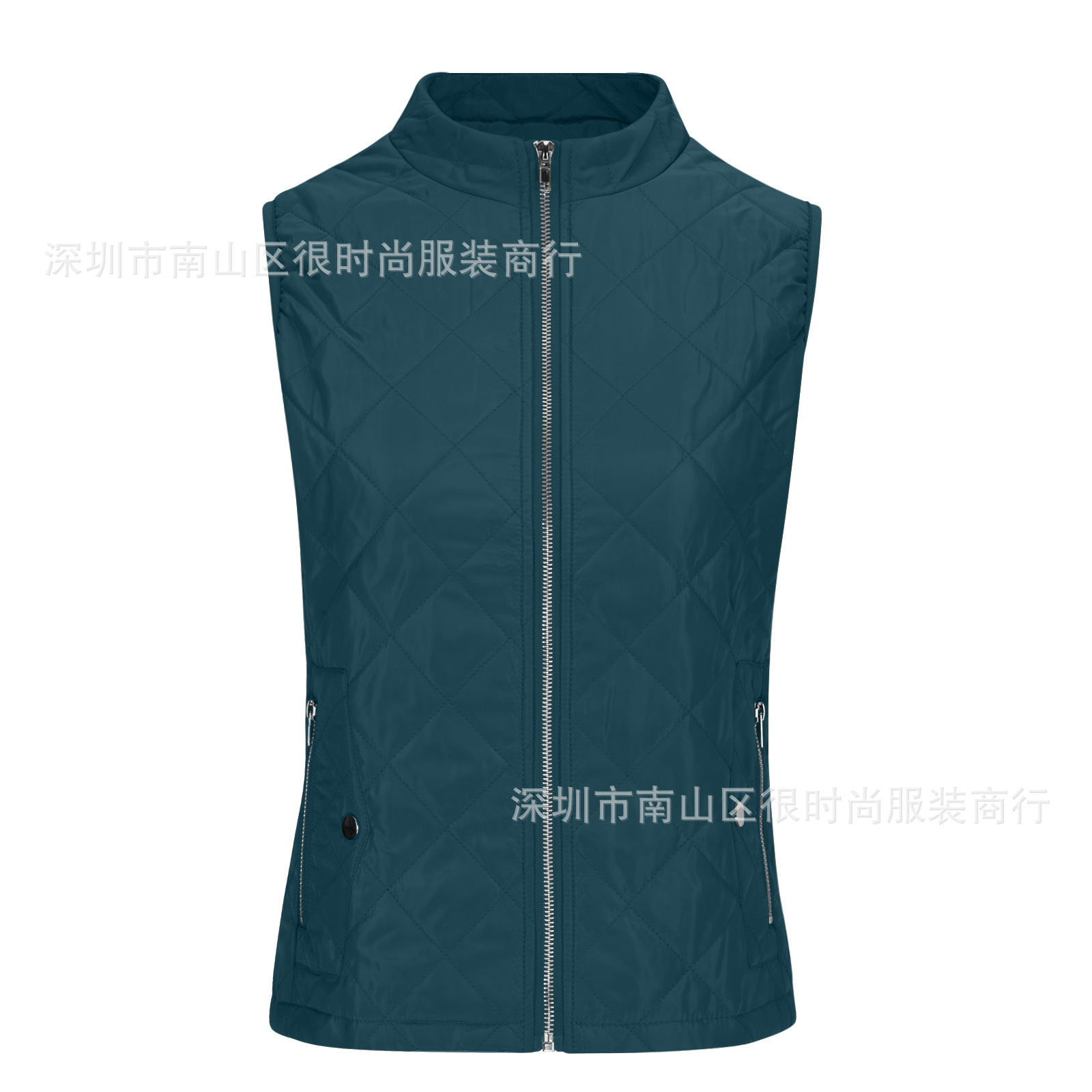 유럽과 미국 여성 면 조끼 2023 새로운 아마존 AliExpress 퀼트 세로 칼라 지퍼 포켓 따뜻한 면 조끼