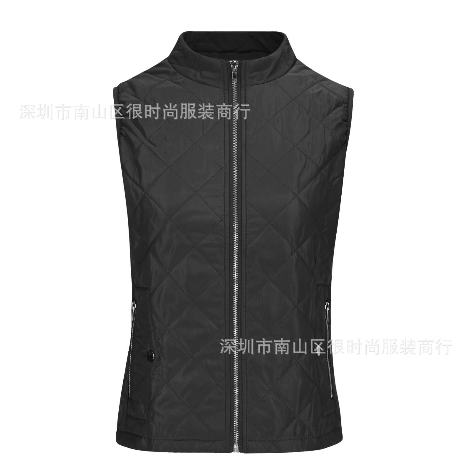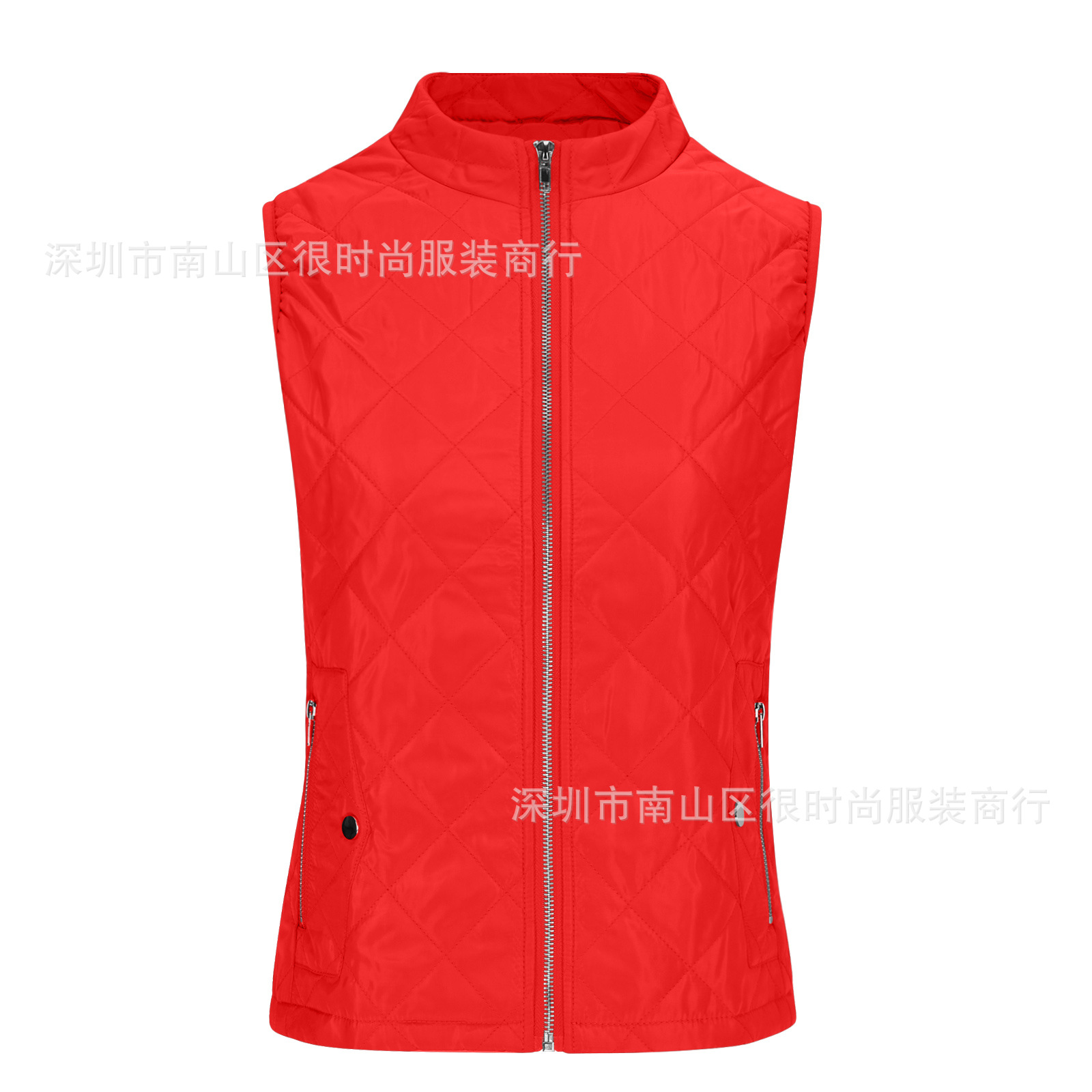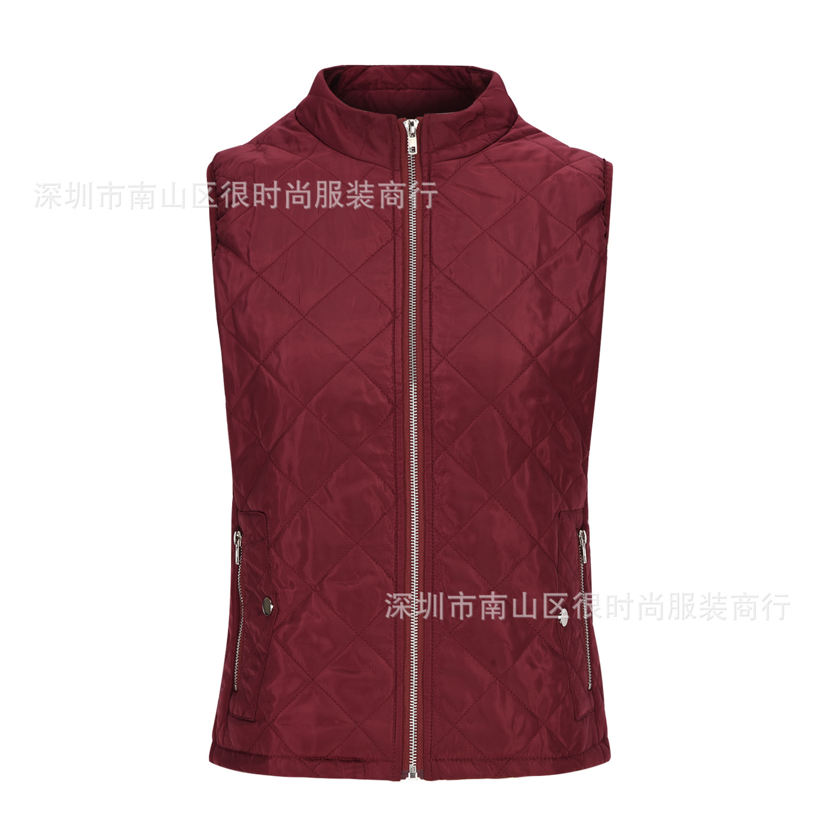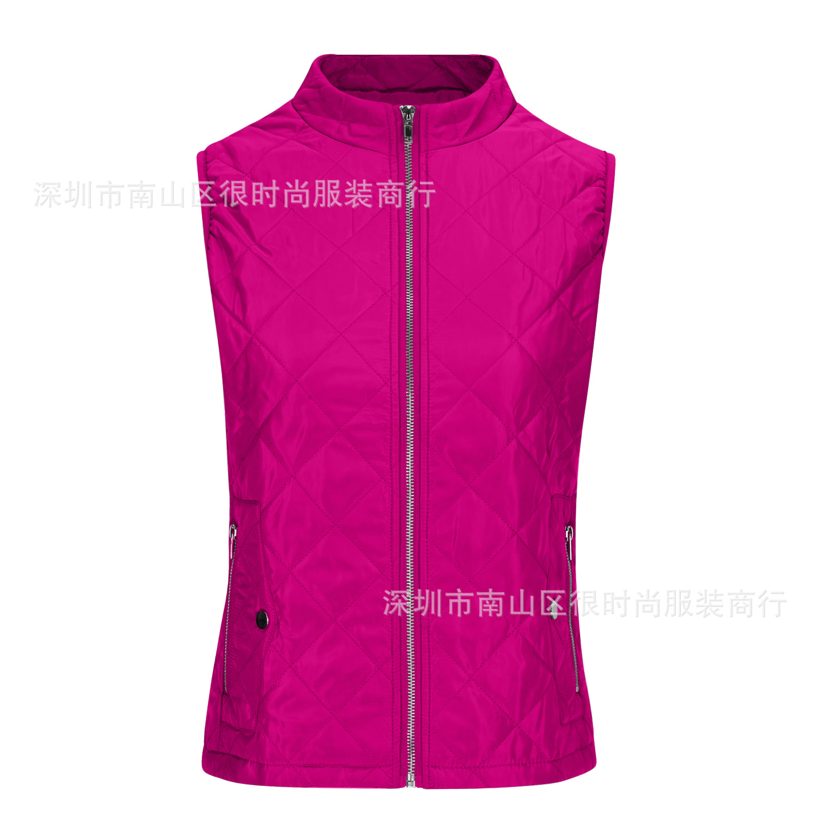 유럽과 미국 여성 면 조끼 2023 새로운 아마존 AliExpress 퀼트 세로 칼라 지퍼 포켓 따뜻한 면 조끼