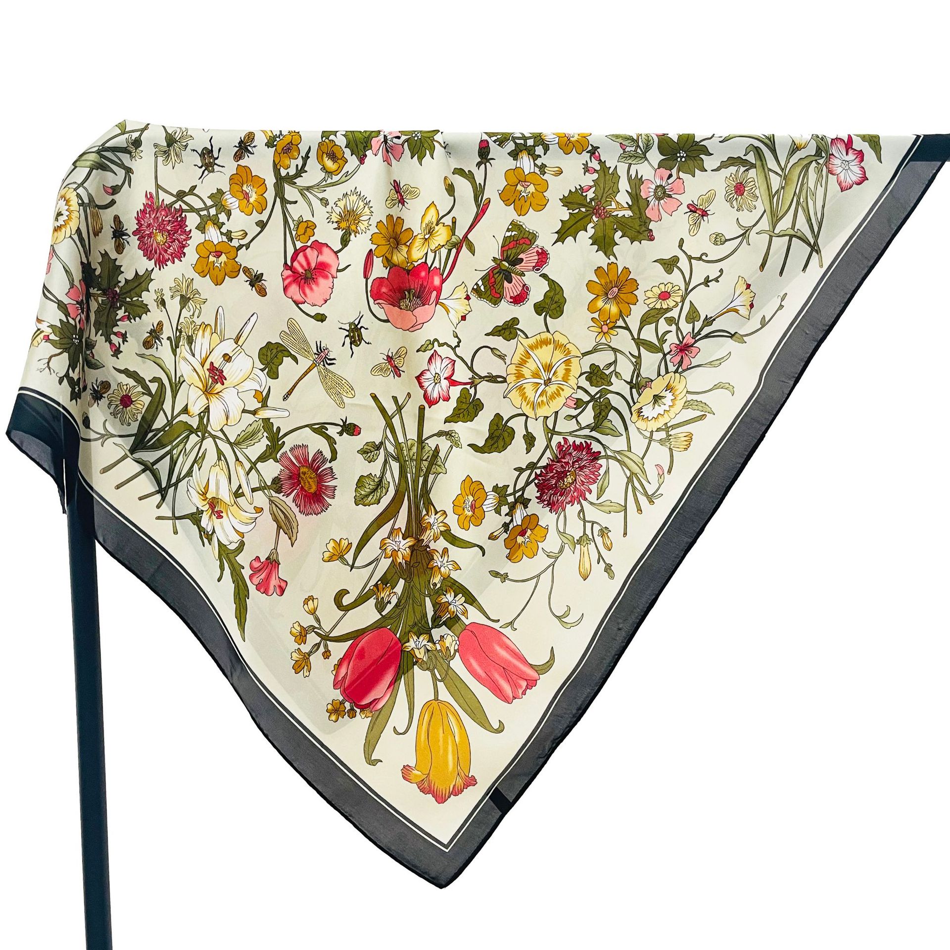 일본과 한국 소녀 스카프 70cm 작은 사각형 스카프 우아한 숙녀 장식 헤어 링 식물 꽃 넥타이 헤어 밴드 대외 무역
