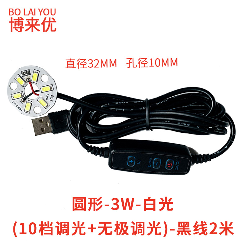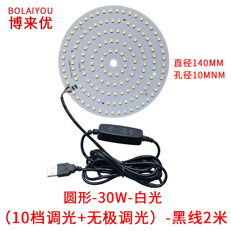5V单色灯板 30W-白光 +10档无极调光开关线-黑线SK