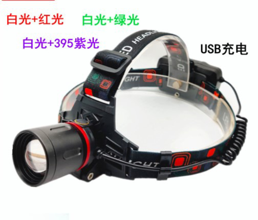 AliExpress 국경 간 공급 xpe 빨간색 흰색 흰색 녹색 이중 광원 충전 led 알루미늄 합금 야외 헤드 라이트 대형 조리개