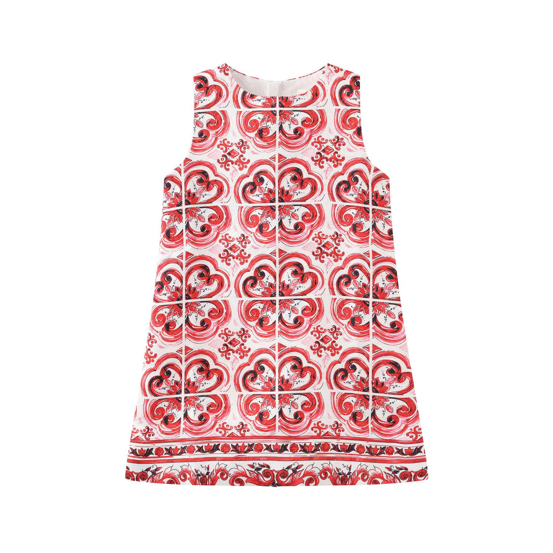 2025 신상 아동복 여아 청화백자 원피스 민소매 조끼 원피스 유럽풍 패션 수출 아동복