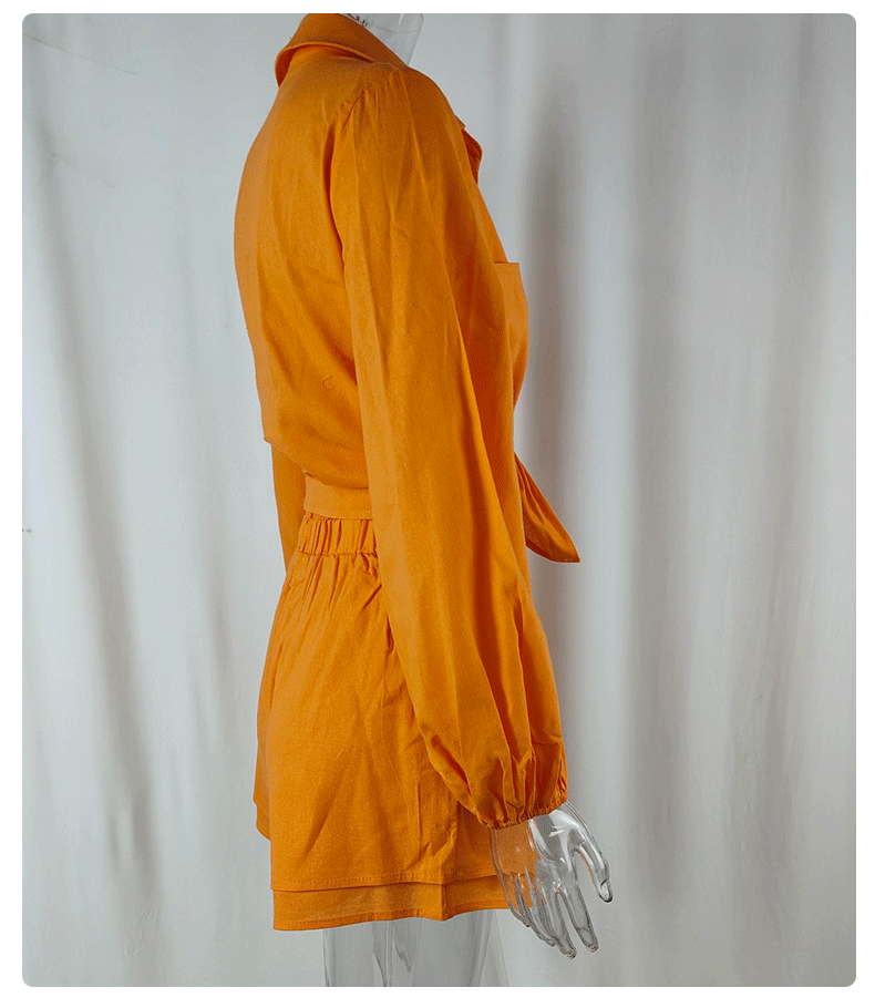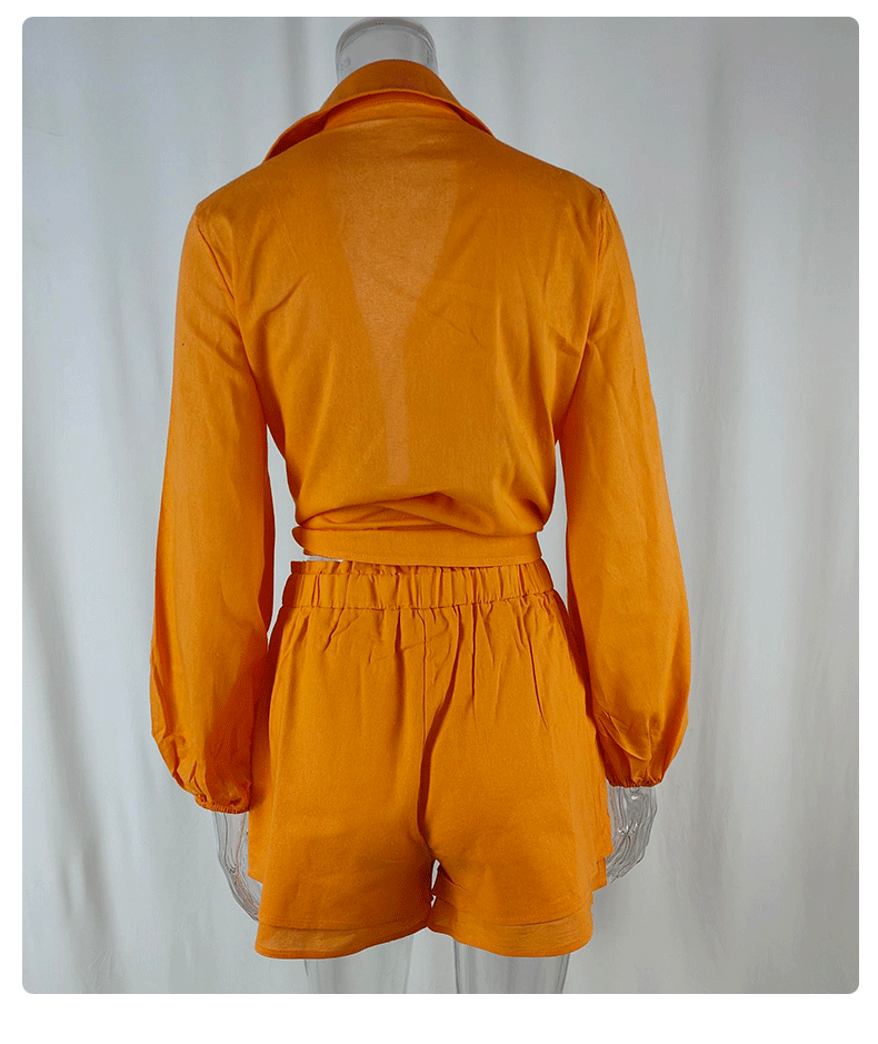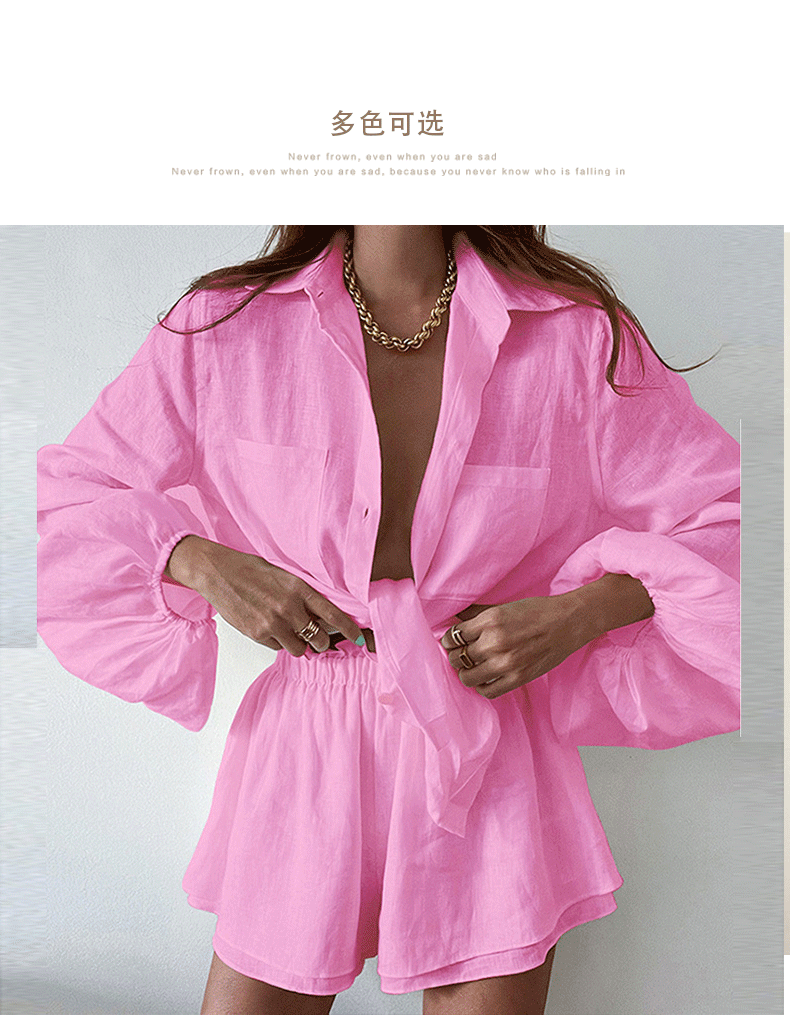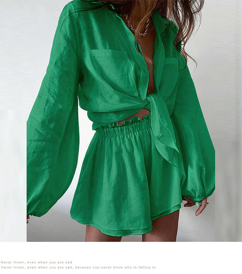 2025 Amazon 유럽과 미국의 국경 간 여성 캐주얼 솔리드 컬러 프릴 반바지 셔츠 패션 정장 여성 투피스 세트