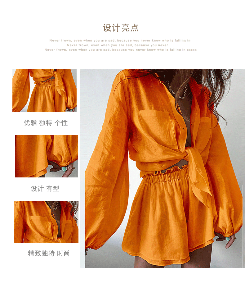 2025 Amazon 유럽과 미국의 국경 간 여성 캐주얼 솔리드 컬러 프릴 반바지 셔츠 패션 정장 여성 투피스 세트스토어 가기