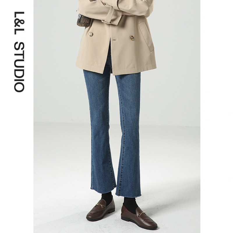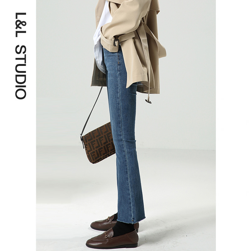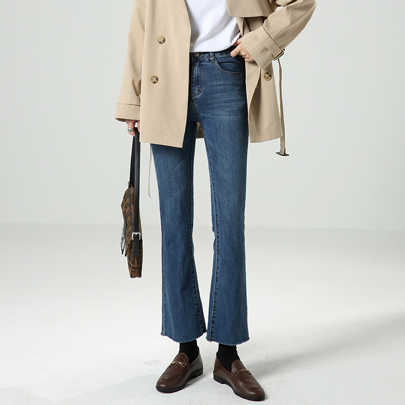 여성용 마이크로 플레어 청바지 2024 새로운 루즈하고 시크한 하이웨이스트 키가 크고 슬림한 9부 봄 가을 바지스토어 가기