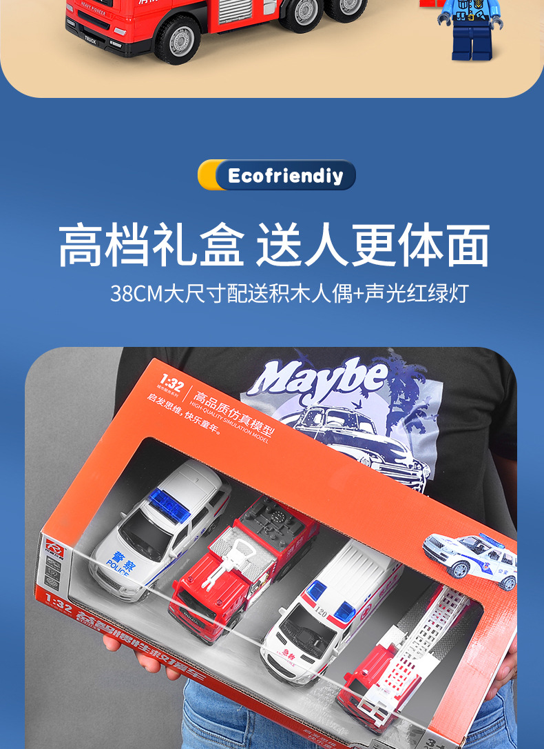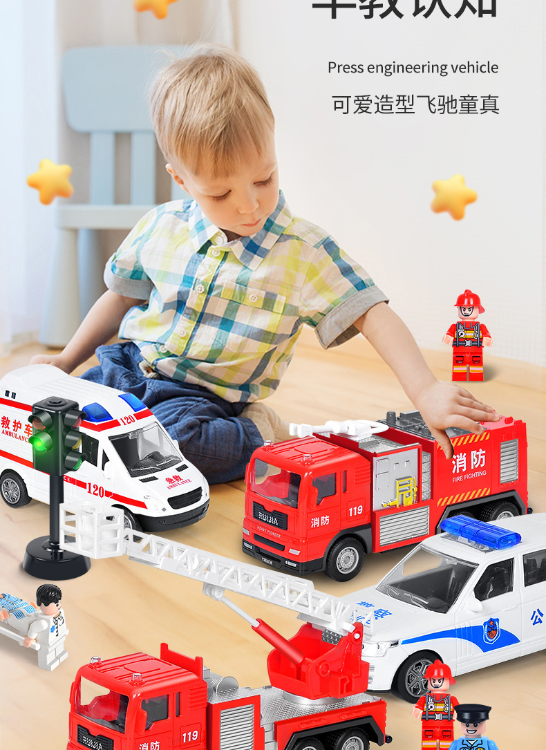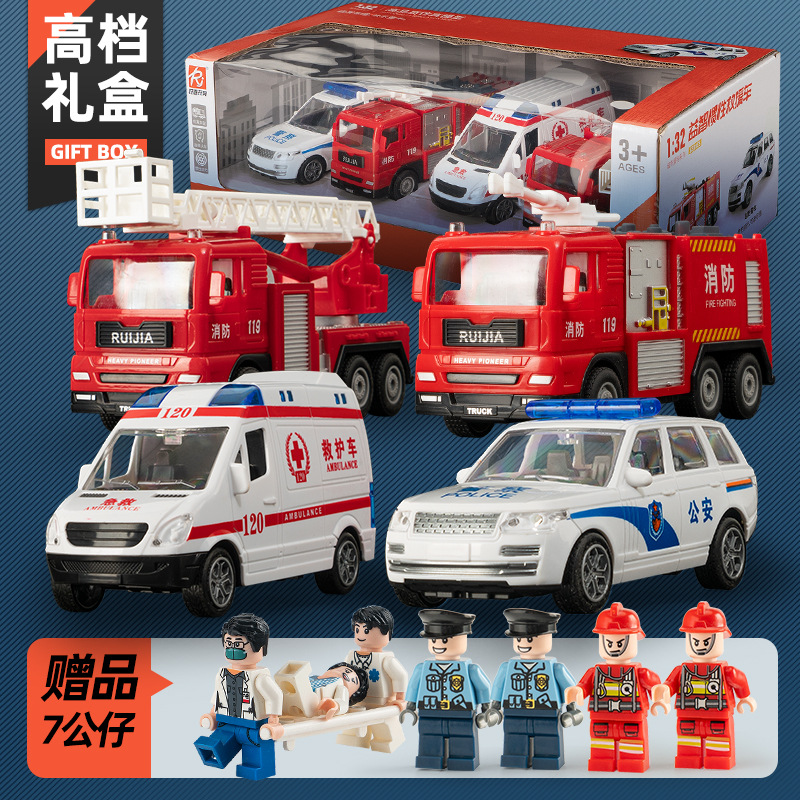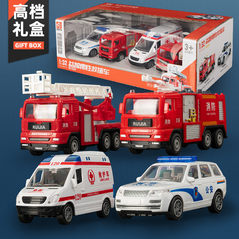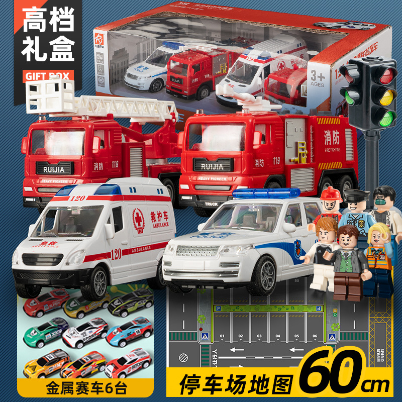 어린이 소방차 장난감 자동차 세트 선물 상자 자동차 시뮬레이션 구급차 경찰차 소년 장난감 재고 도매스토어 가기