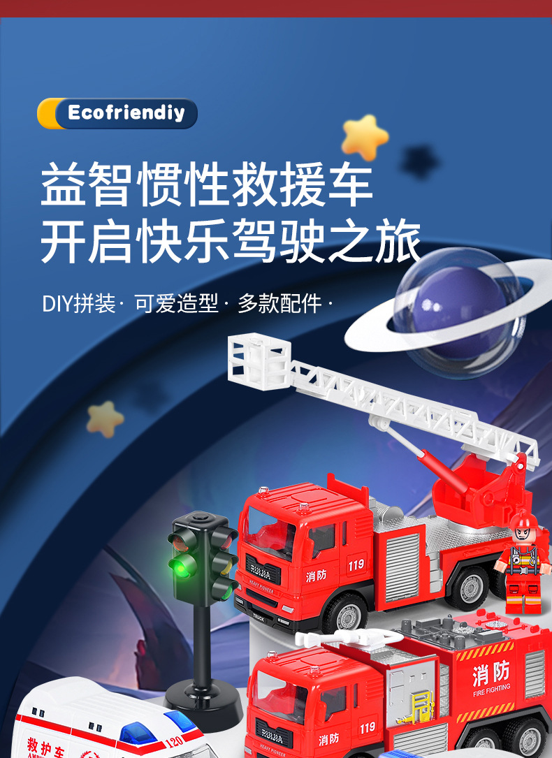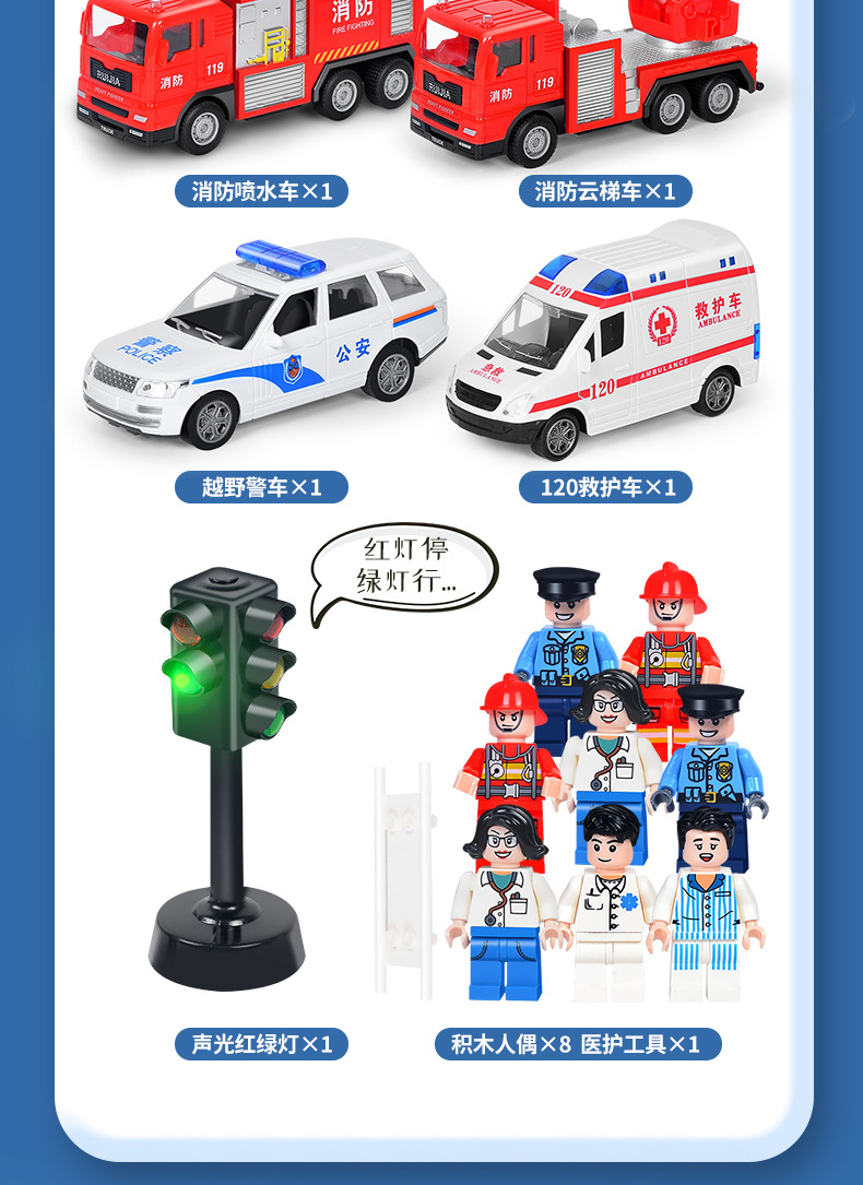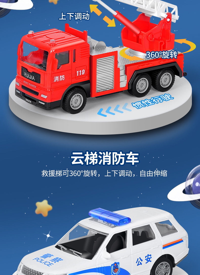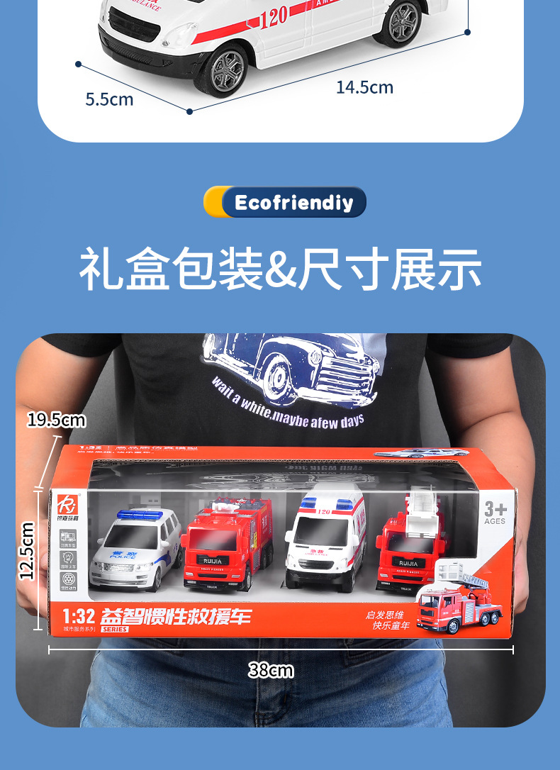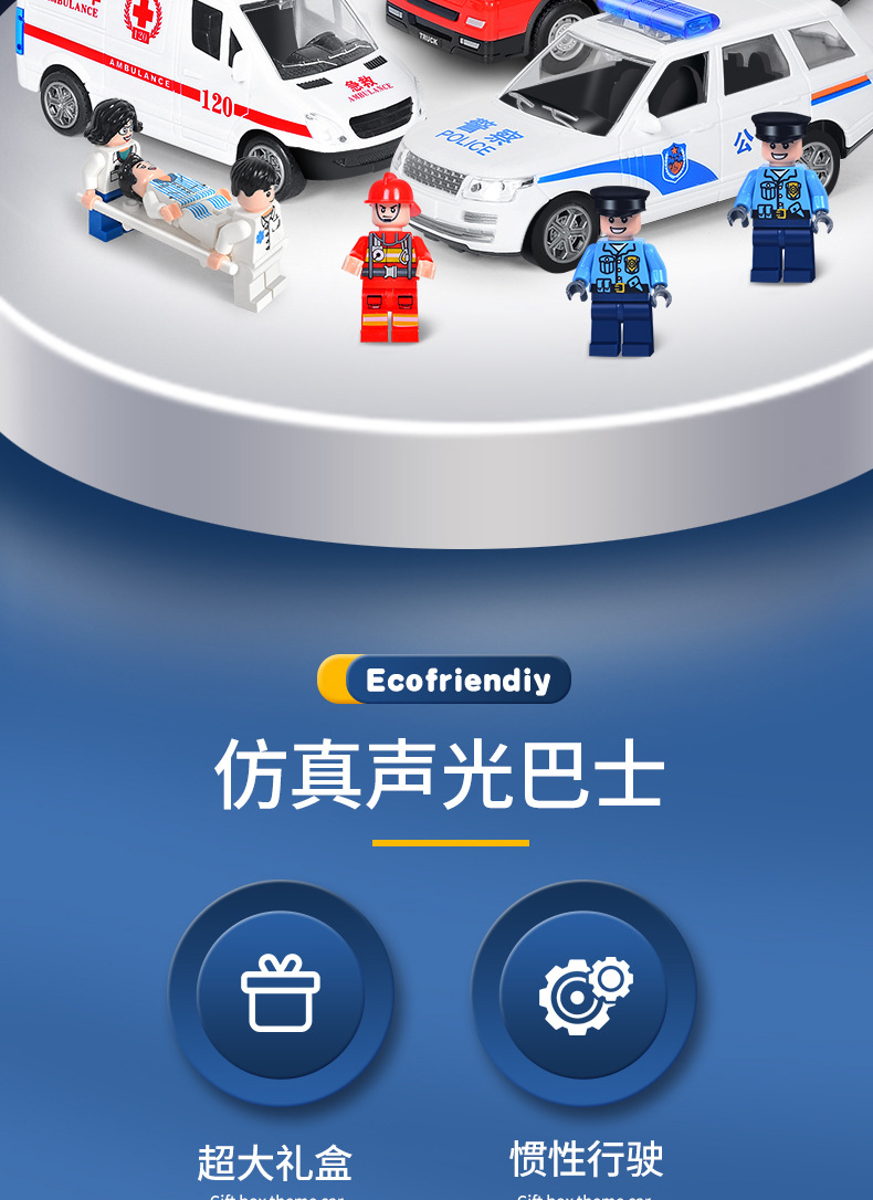 어린이 소방차 장난감 자동차 세트 선물 상자 자동차 시뮬레이션 구급차 경찰차 소년 장난감 재고 도매스토어 가기