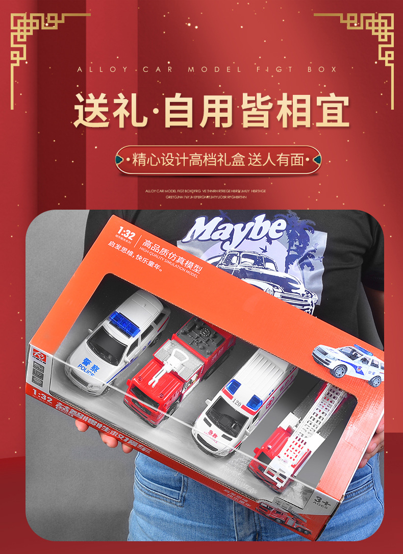 어린이 소방차 장난감 자동차 세트 선물 상자 자동차 시뮬레이션 구급차 경찰차 소년 장난감 재고 도매