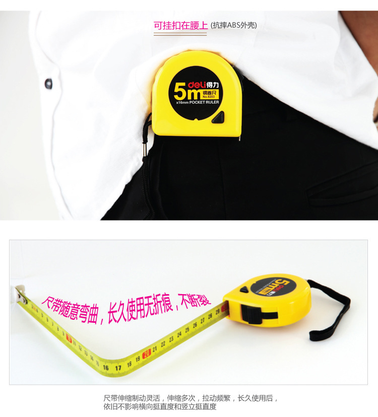 델리 8203 스틸 테이프 5m 테이프 목공 배관공 자동 수축 테이프 문구 사무용품