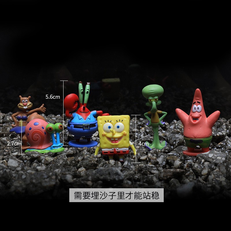 수조 및 수족관 Q 버전 스폰지밥 6팩 8종 세트 파이 빅 스타 크랩 보스 케이크 장식품 만화 스타일스토어 가기