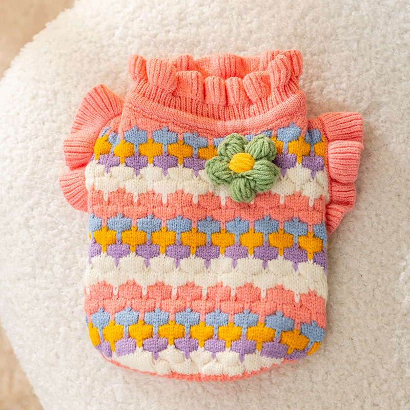가을 겨울 애완동물 스웨터 따뜻한 중소형 강아지 테디 비숑 포메라니안 니트 가디건 고양이 강아지 옷