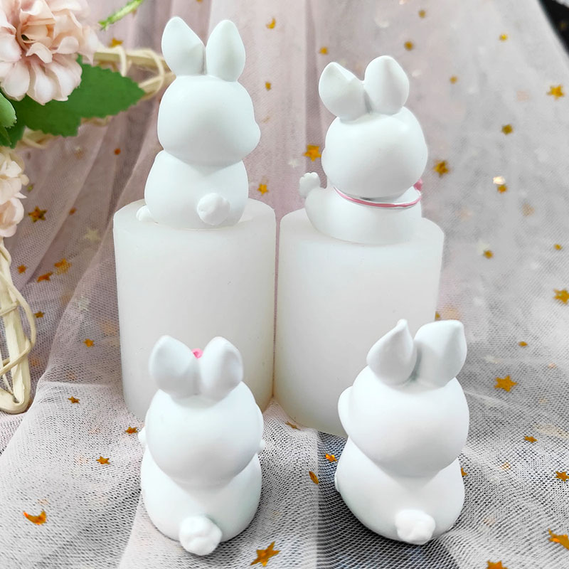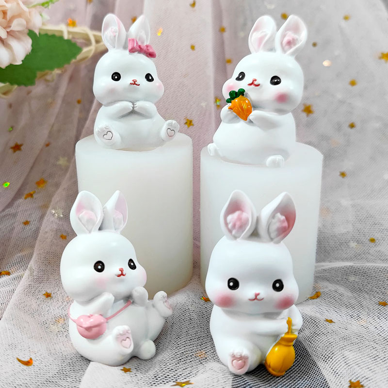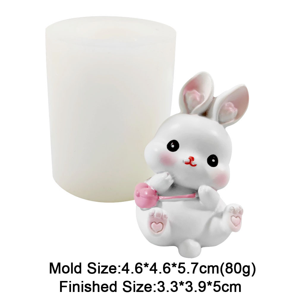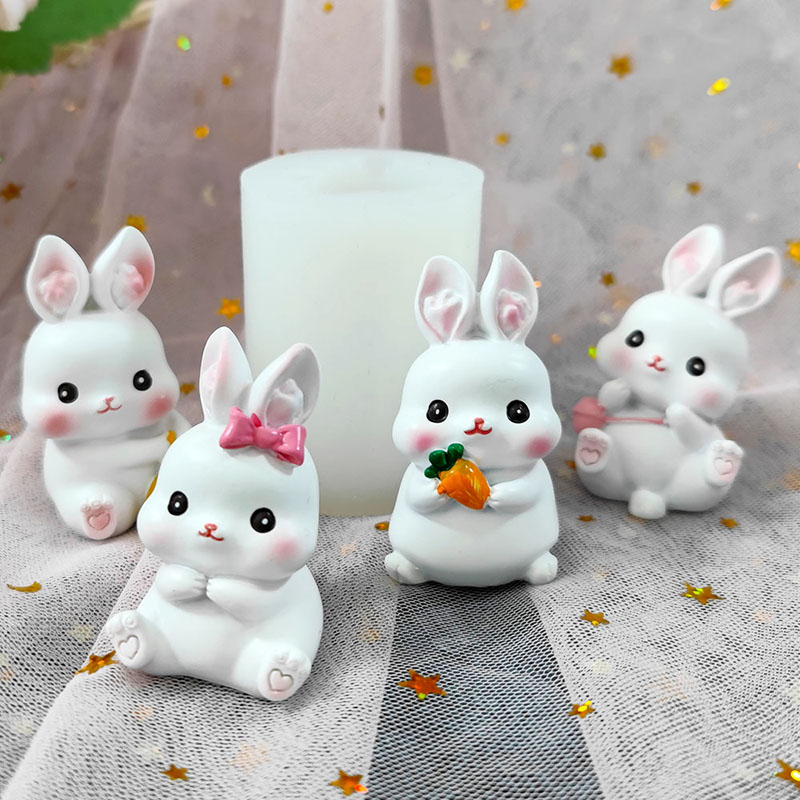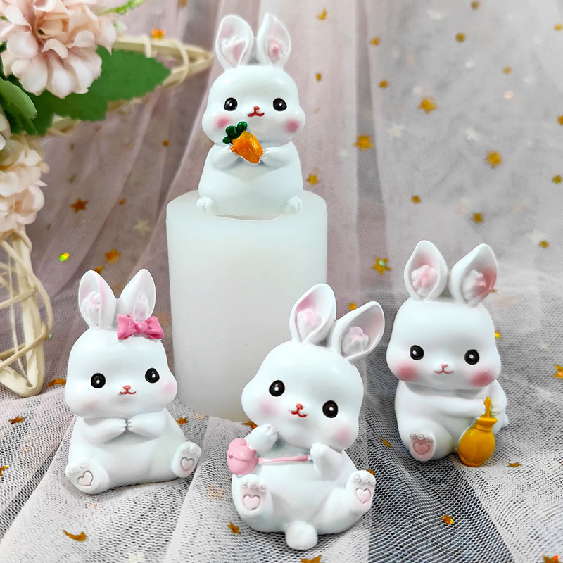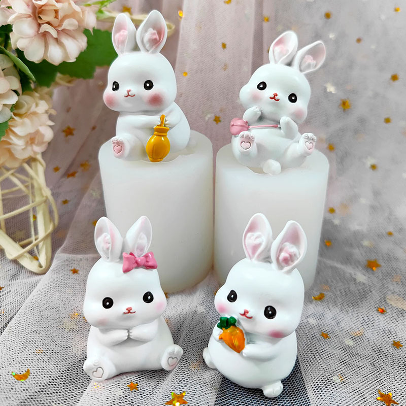 유럽 동물 만화 화이트 토끼 실리콘 베이킹 수지 AB 드롭 접착제 양초 초콜릿 애완 동물 간식 금형