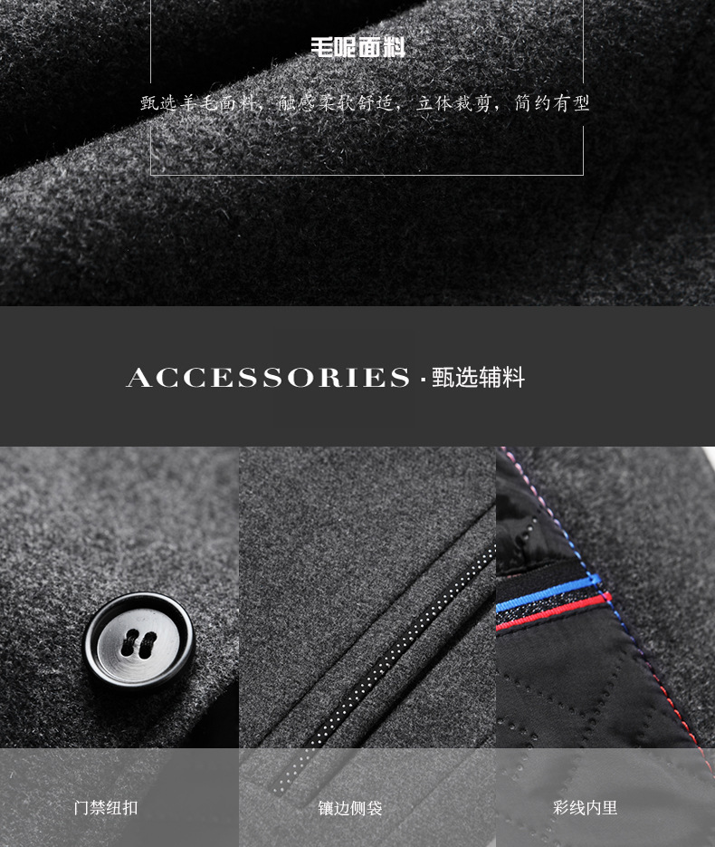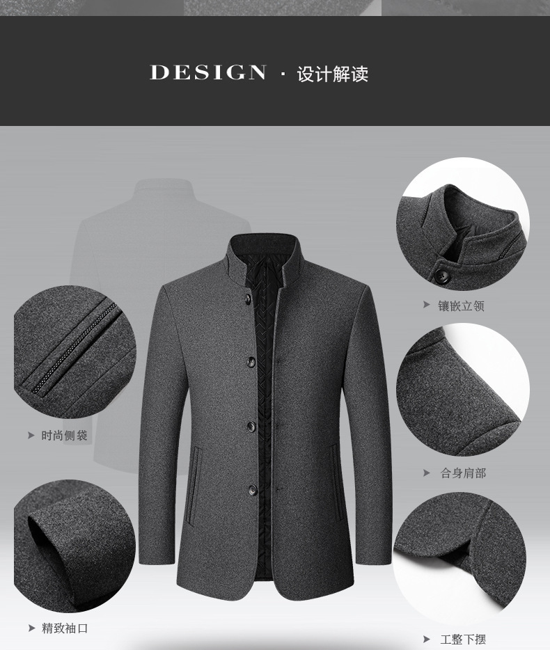 남성 모직 재킷, 남성 중간 길이 재킷, 스탠드 칼라, 중년 남성 2025 가을 겨울 아빠 스타일 모직 재킷