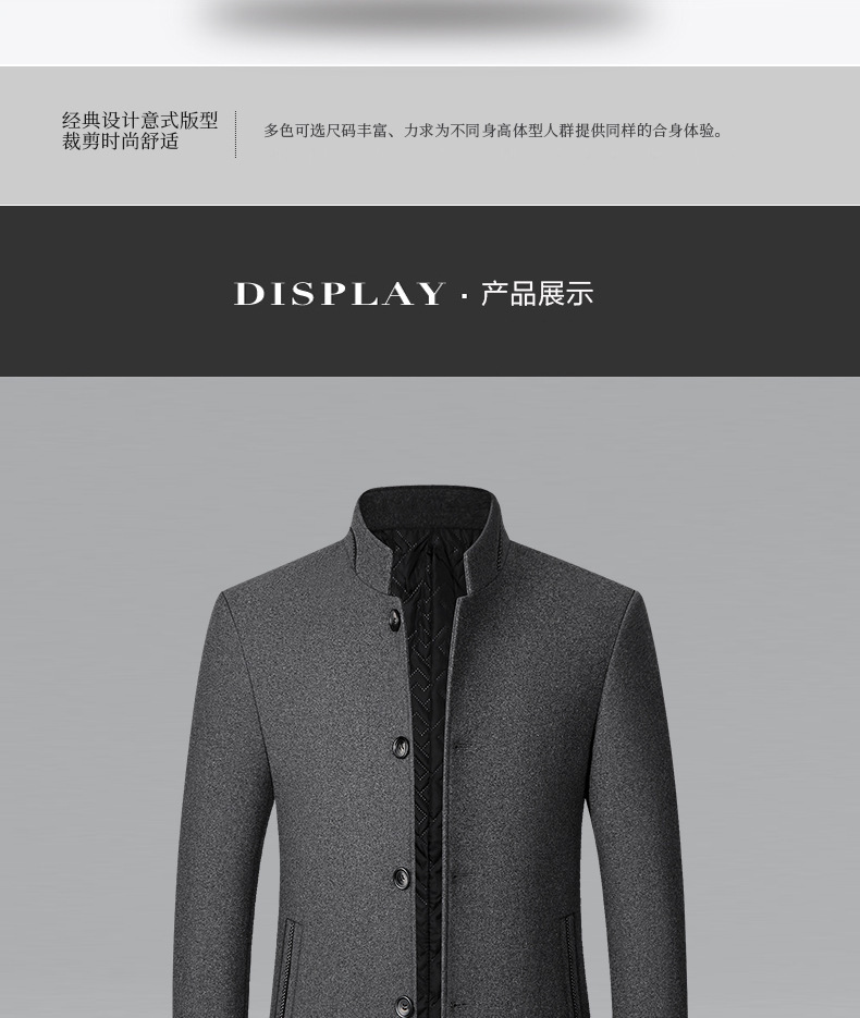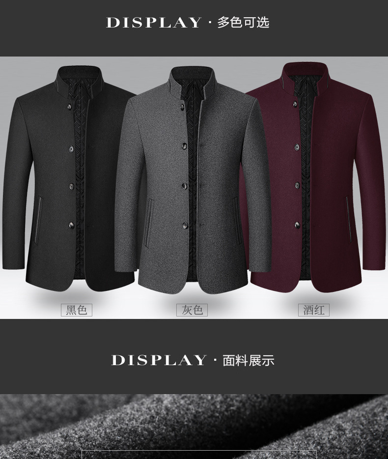남성 모직 재킷, 남성 중간 길이 재킷, 스탠드 칼라, 중년 남성 2025 가을 겨울 아빠 스타일 모직 재킷스토어 가기