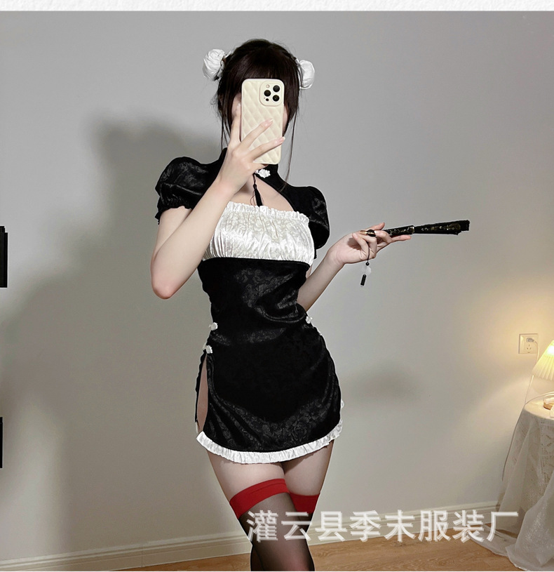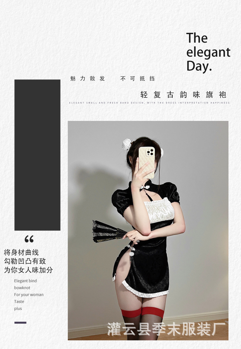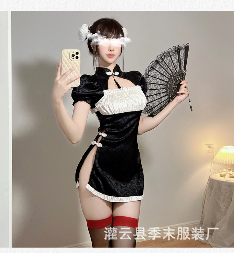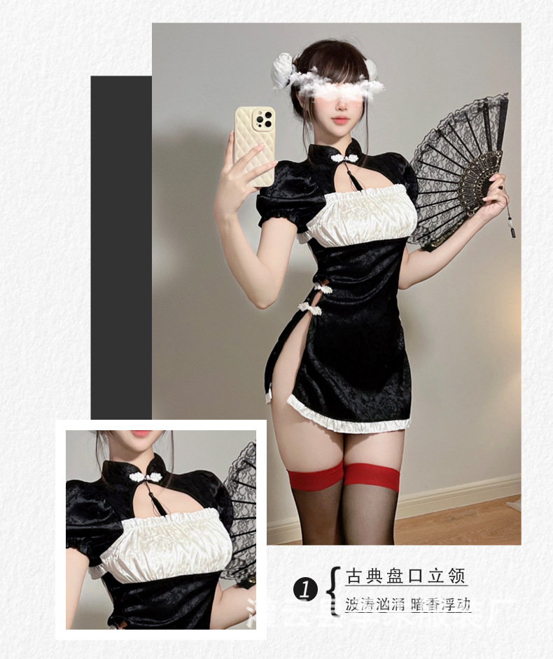 • 치파오 + A45 레드 에지 블랙 스타킹