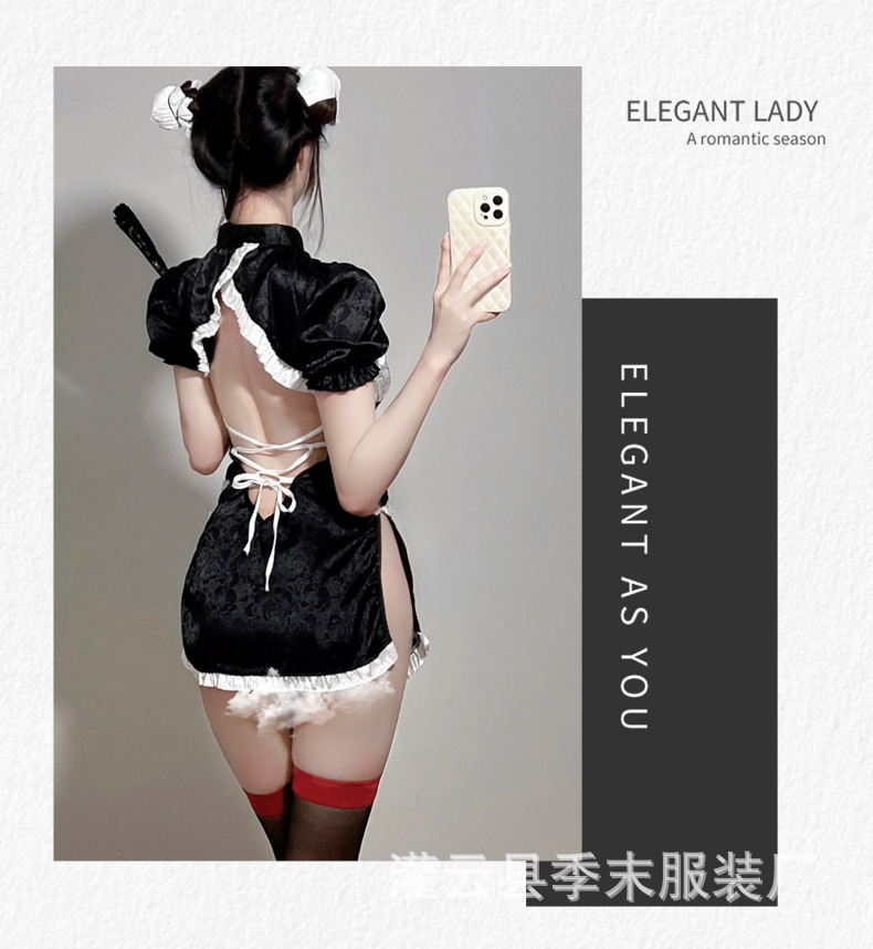빈티지 버클 치파오 섹시한 속옷 여성 중국 소녀 스트랩 등이없는 중국 공화국 스타일 원피스 유니폼 세트