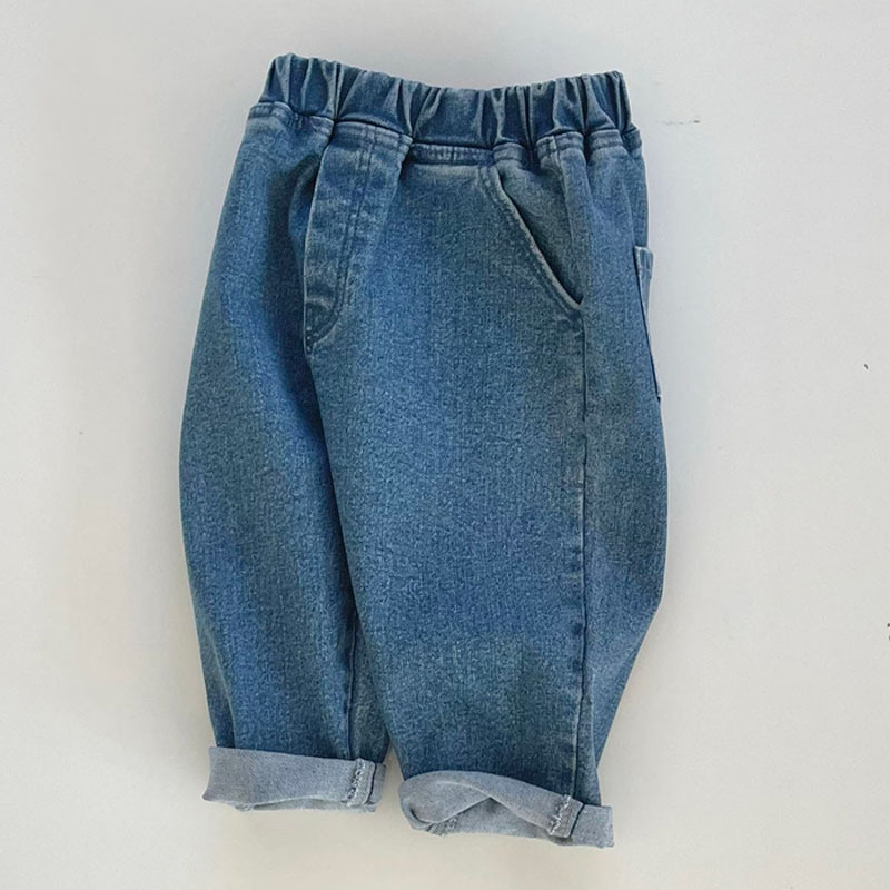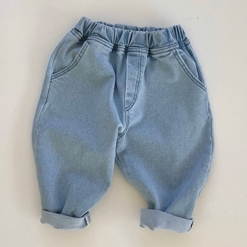 아기와 유아복의 한국 스타일 간단한 유행 청바지 부드러운 캐주얼 바지 어린이 봄과 가을 바지스토어 가기