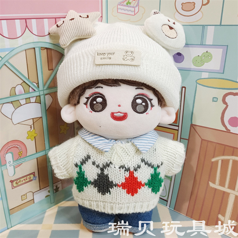• Ma Doodle + W 스웨터 + 파란색과 흰색 셔츠 + 청바지 + 스타 화이트 모자