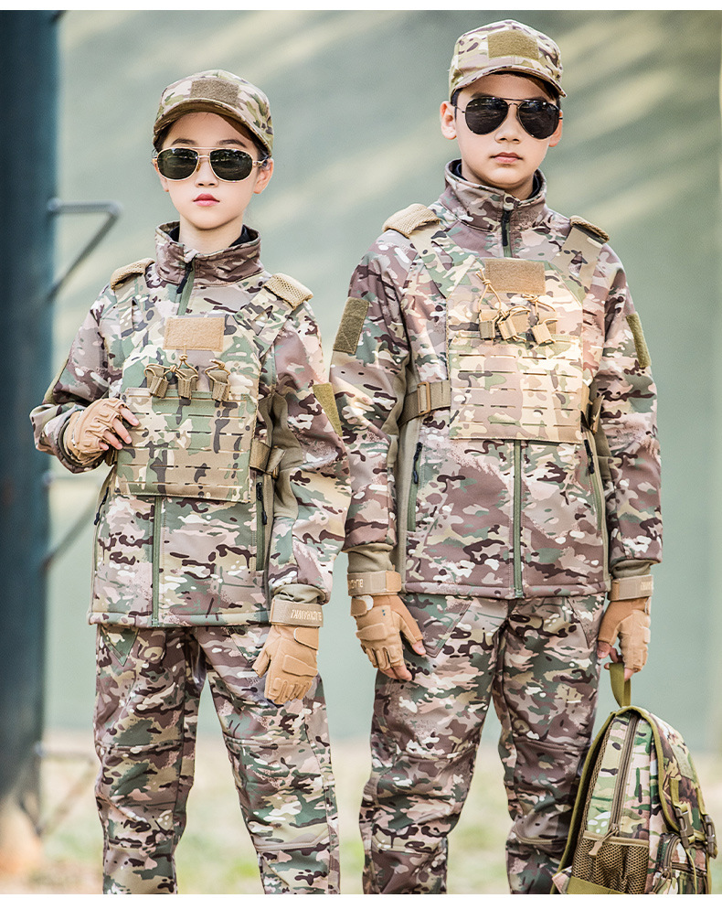 말 어린이 위장 상어 피부 폭행 의류 세트 남자의 기모 따뜻한 재킷 후드 겨울 캠프 의류 도매