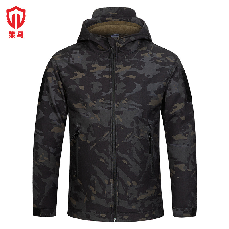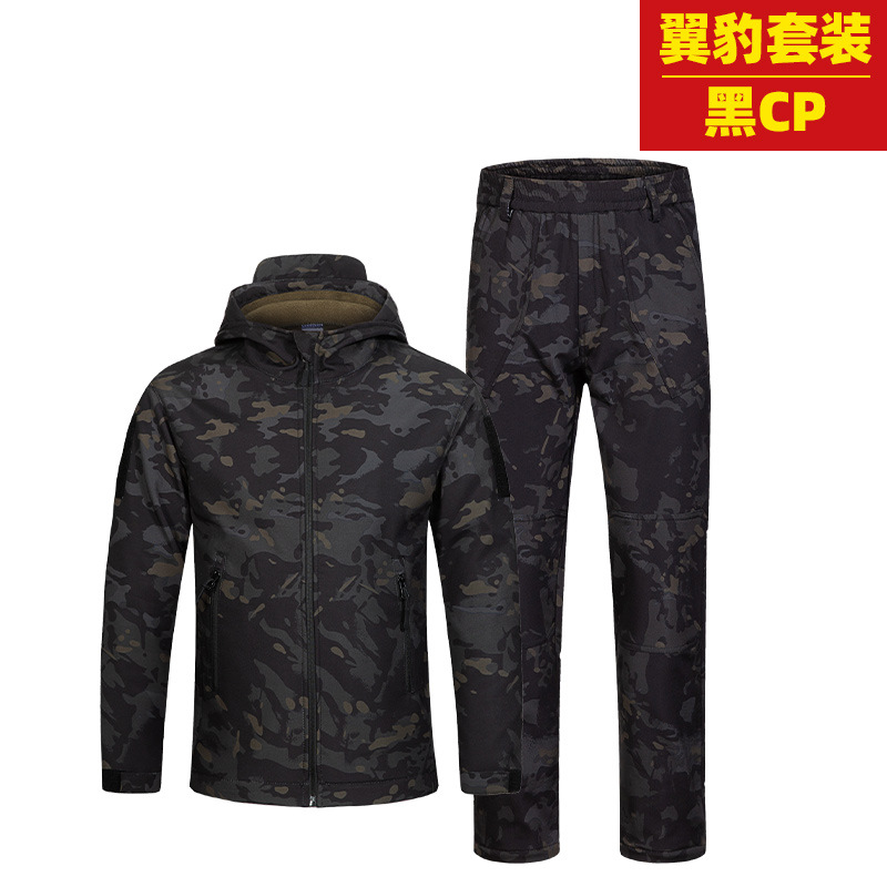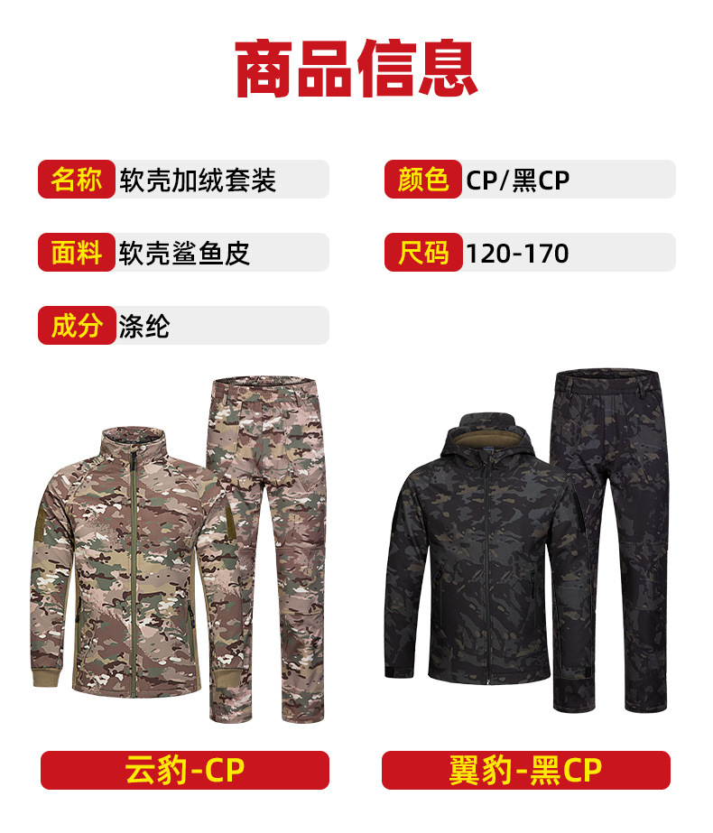말 어린이 위장 상어 피부 폭행 의류 세트 남자의 기모 따뜻한 재킷 후드 겨울 캠프 의류 도매스토어 가기