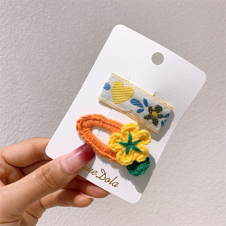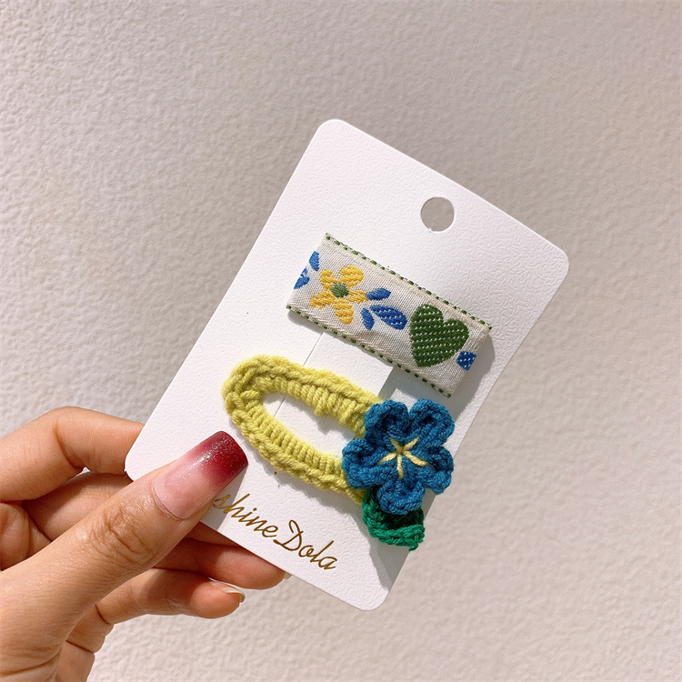 가을과 겨울 새로운 어린이 양모 꽃 헤어 클립 달콤한 여자 패브릭 자수 BB 클립 앞머리 깨진 헤어 클립 머리 장식