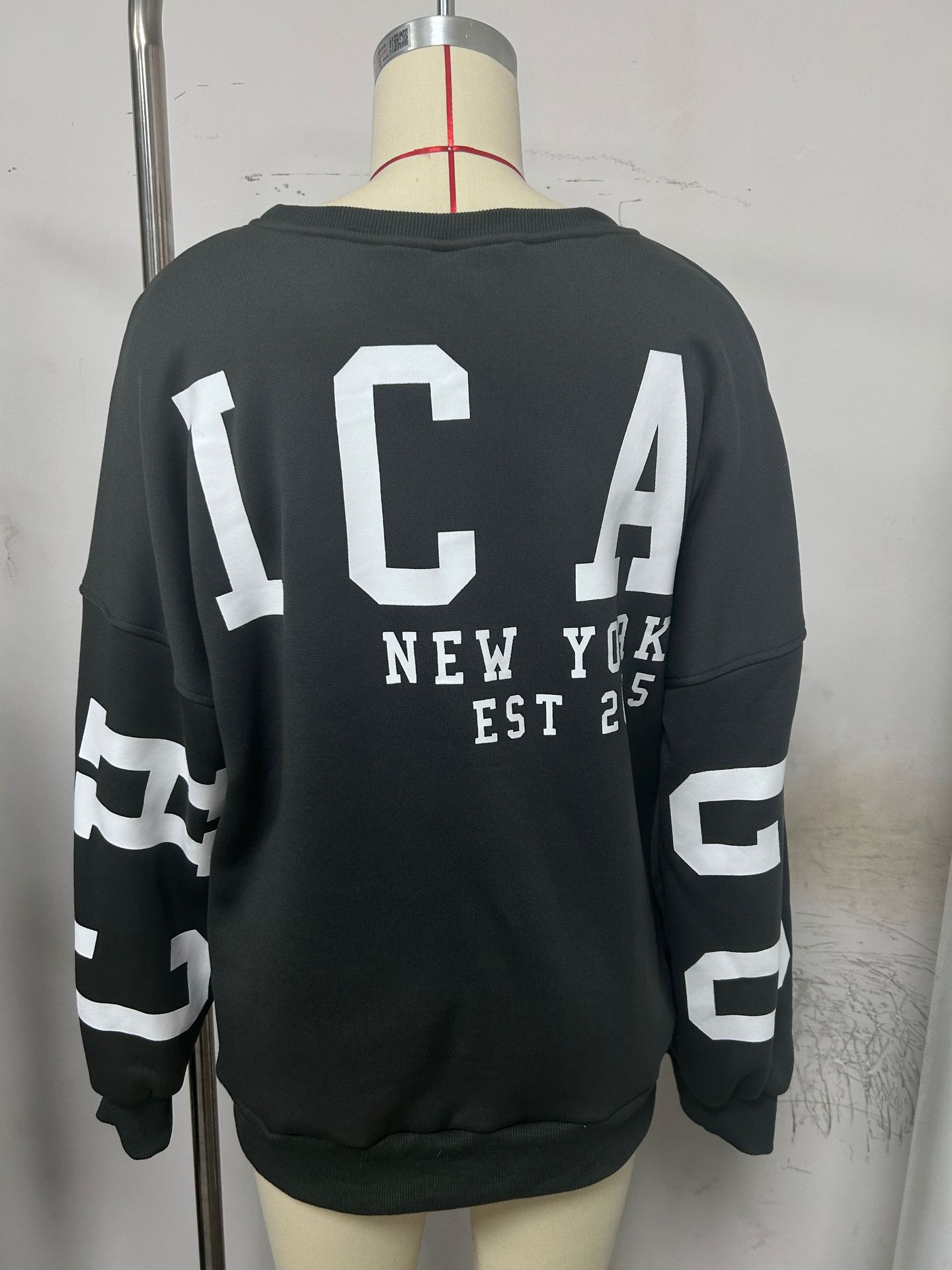 2022 아마존 국경 유럽 및 미국 여성의 캐주얼 패션 인쇄 두꺼운 올 매치 탑 긴 소매 땀