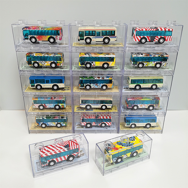 합금 풀 백 자동차 낙서 버스 버스 모델 어린이 장난감 빌딩 블록 상자 유치원 작은 선물 도매