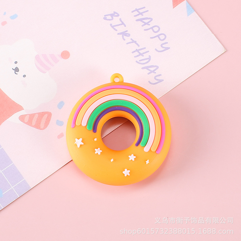 창조적 인 만화 pvc 부드러운 고무 무지개 도넛 키 체인 펜던트 가방 학생 학교 가방 액세서리 작은 선물